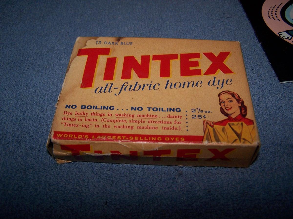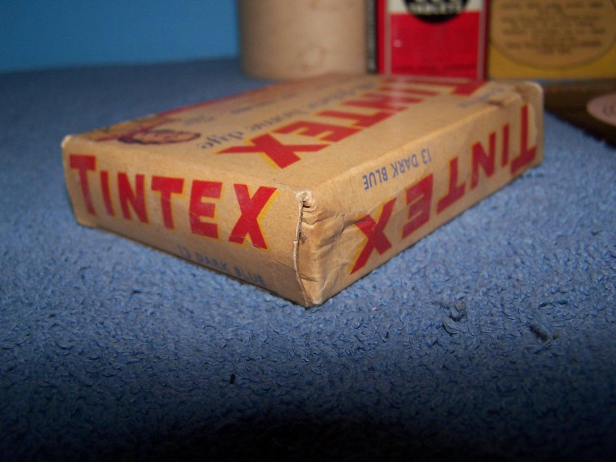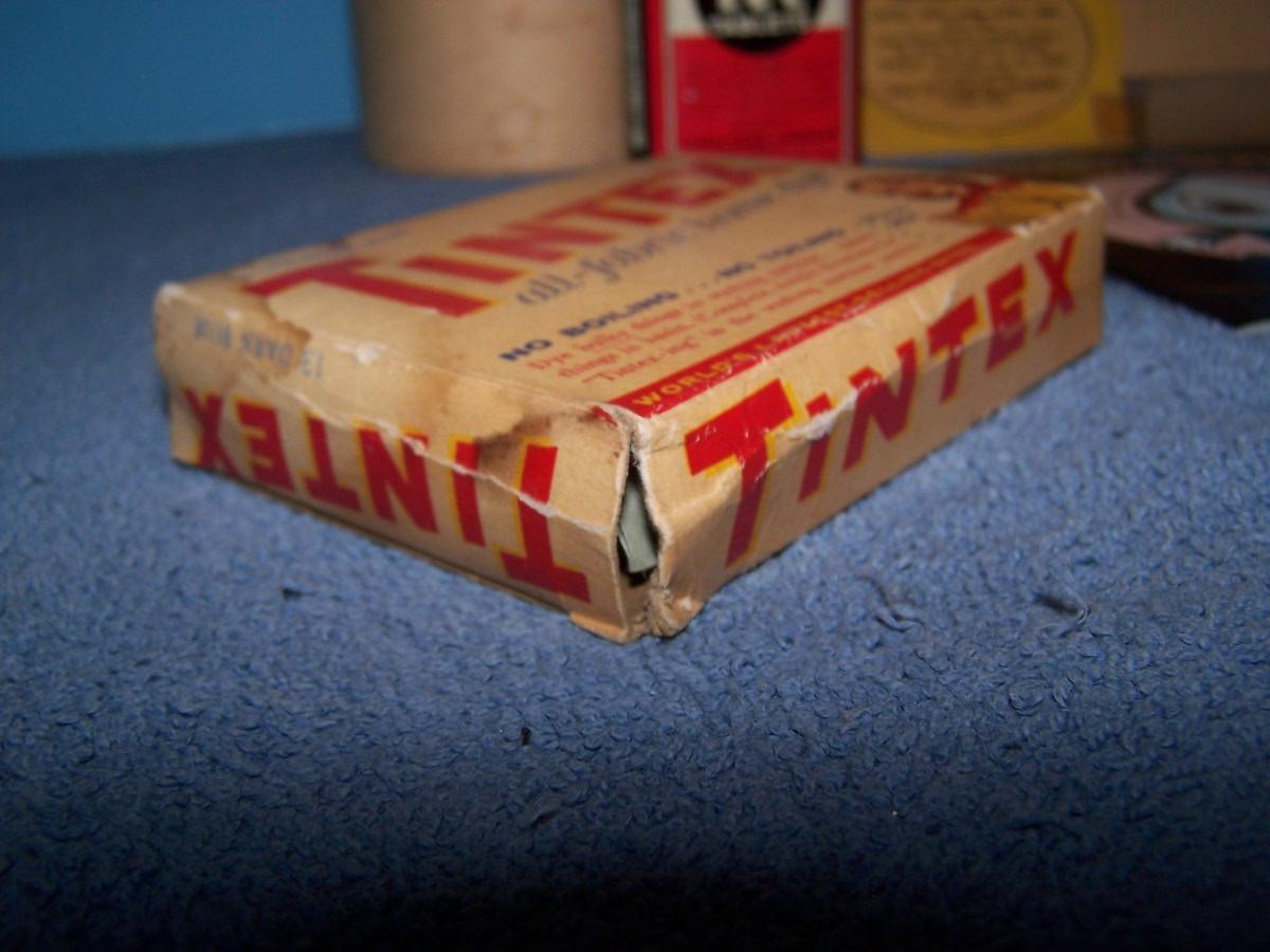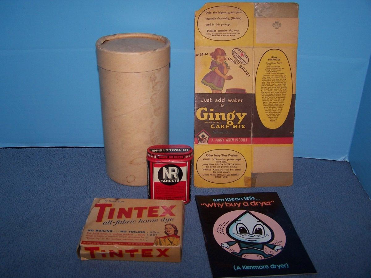 THIS IS SOME GREAT VINTAGE HOUSEHOLD STUFF!!!TINTEX IS FULL. TALL CARDBOARD ICE CREAM CONTAINER IS 7'' TALL.. LIGHT WEAR..