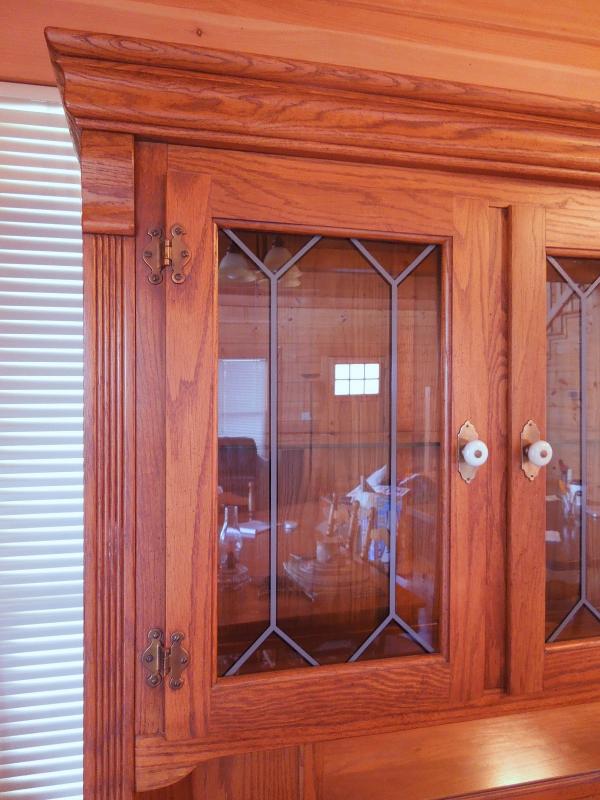 Lot 40:  Keller "Memories" Lighted Oak Leaded Glass Buffet Hutch with Mirror