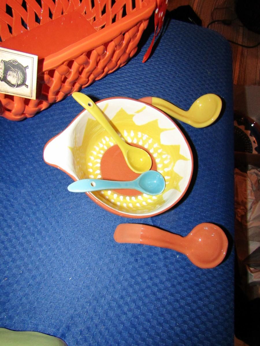 CRATE & BARREL PLATTER 14.5", WITCH CRAFTERS HAND WOVEN BASKET, CRATE & BARREL SALSA DISH WITH SPOONS