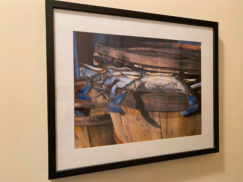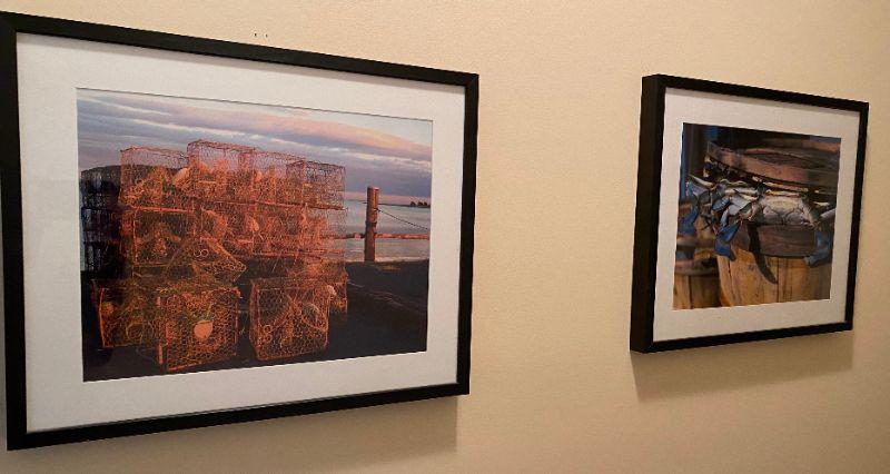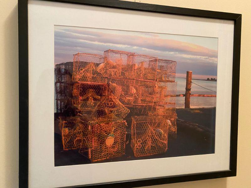 Lot of Two Framed Photographs of Crab pots and crabs in a bushel basket