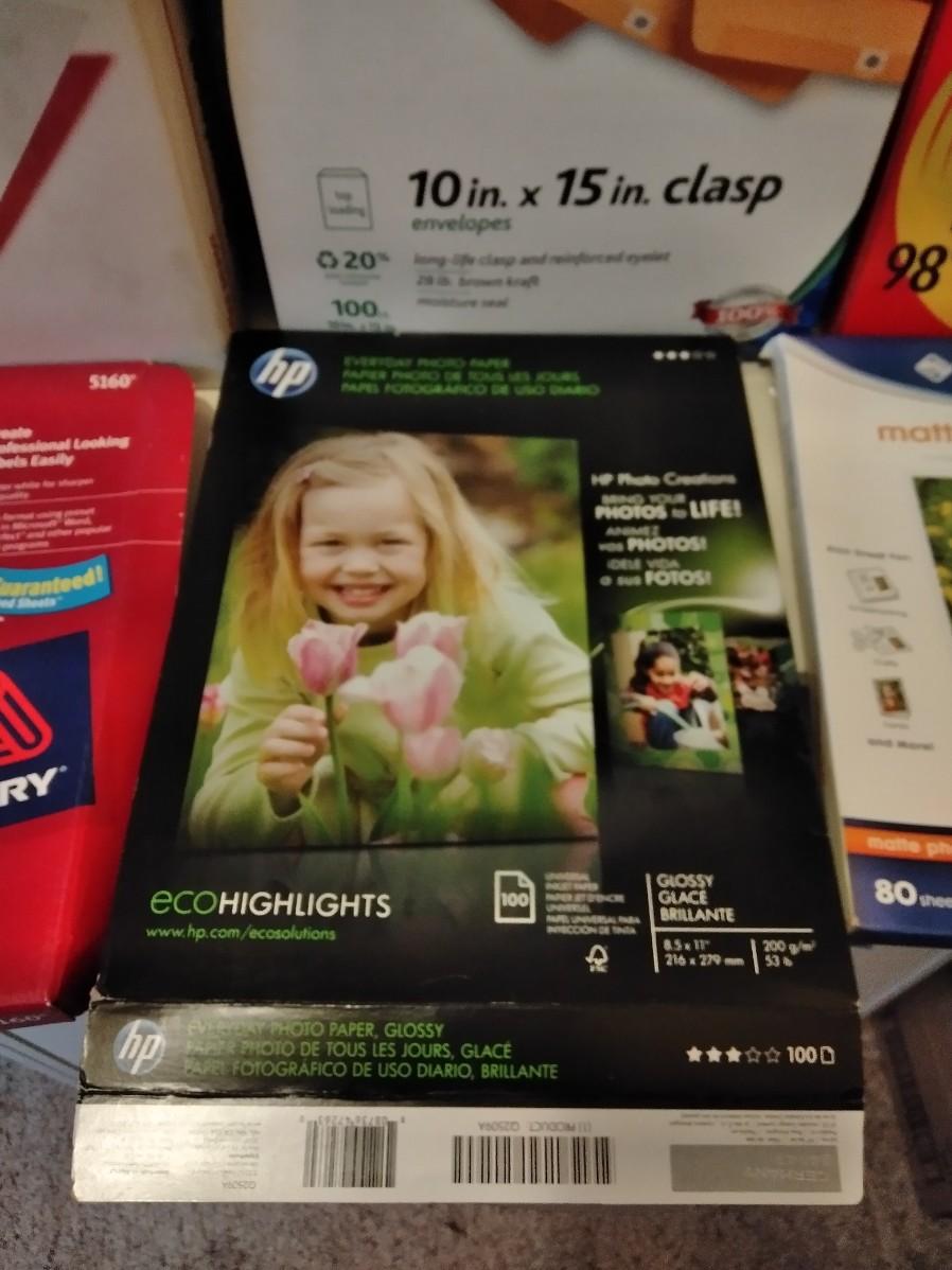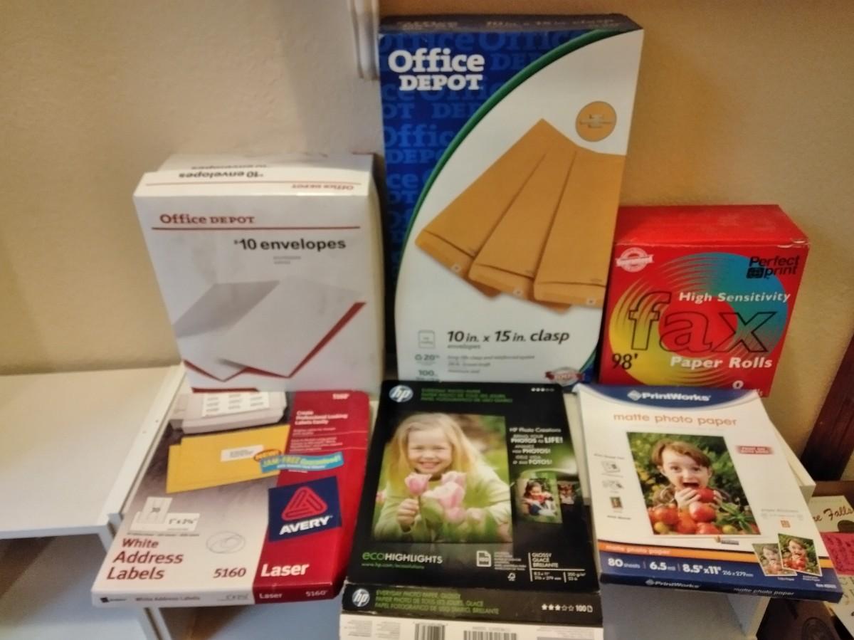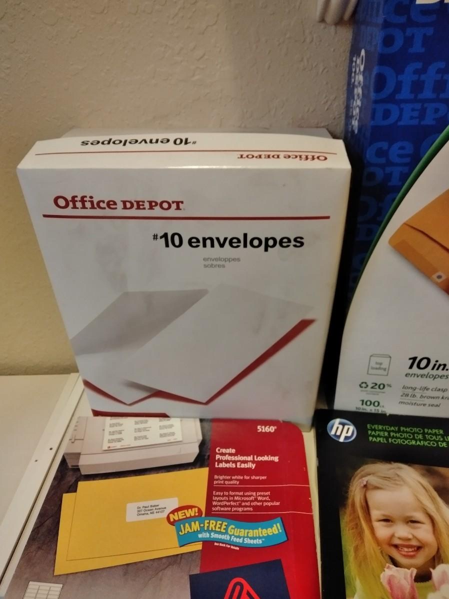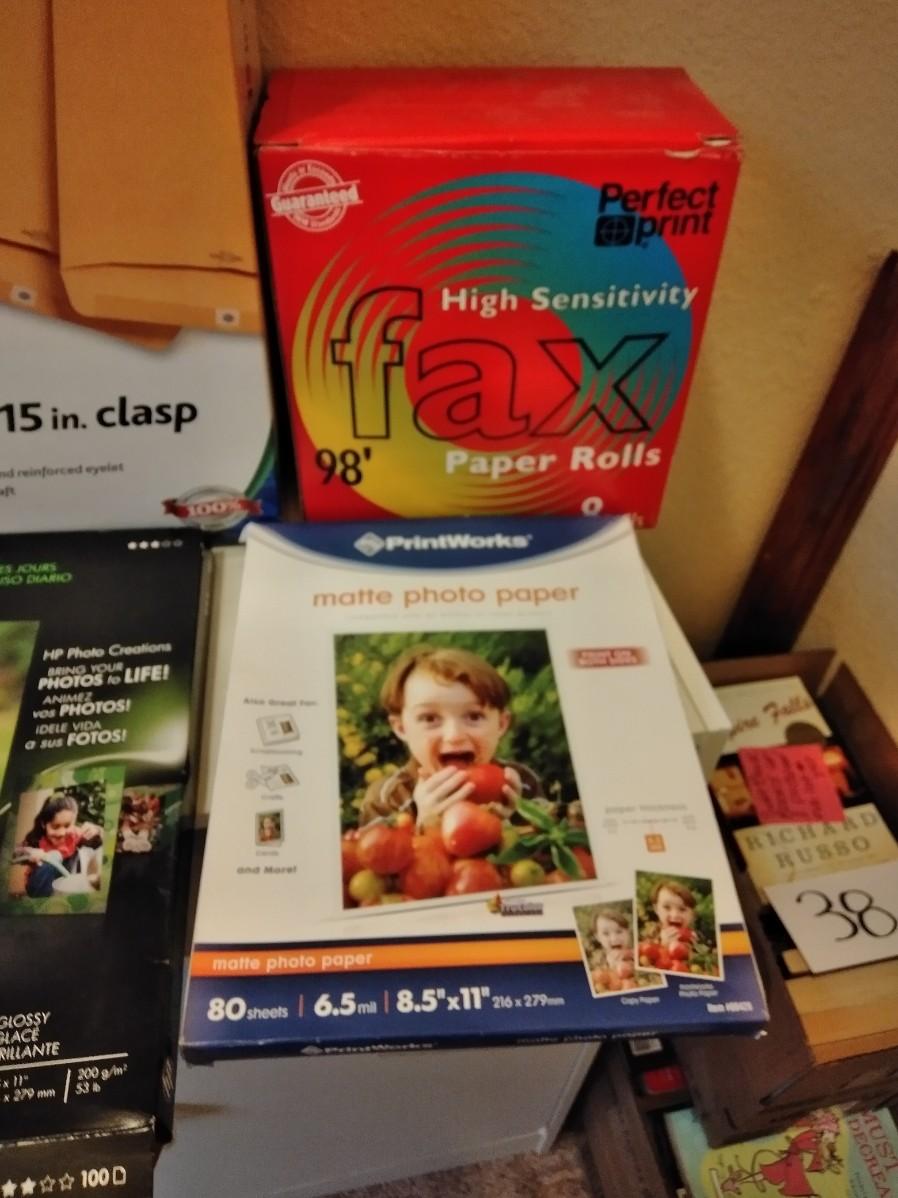 MAILING ENVELOPES, 10" AND 10" X 15" CLASP ENVELOPES. PHOTO PAPER, AND FAX PAPER ROLLS.