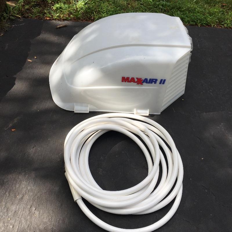 This Max Air vent cover is made to keep the rain out of your RV. Also includes drinking water hose. Cover measures 19” x 22.75” x 9.75”.