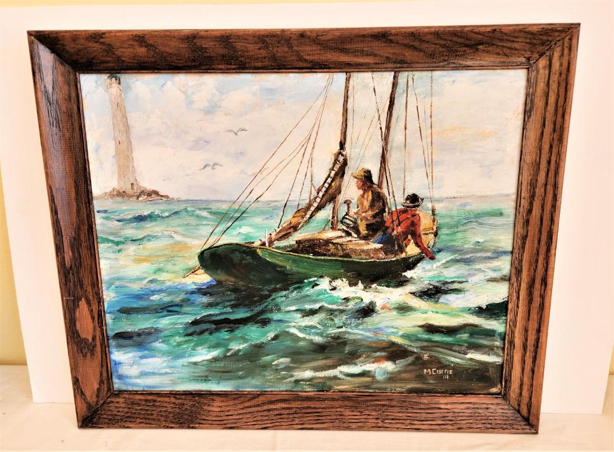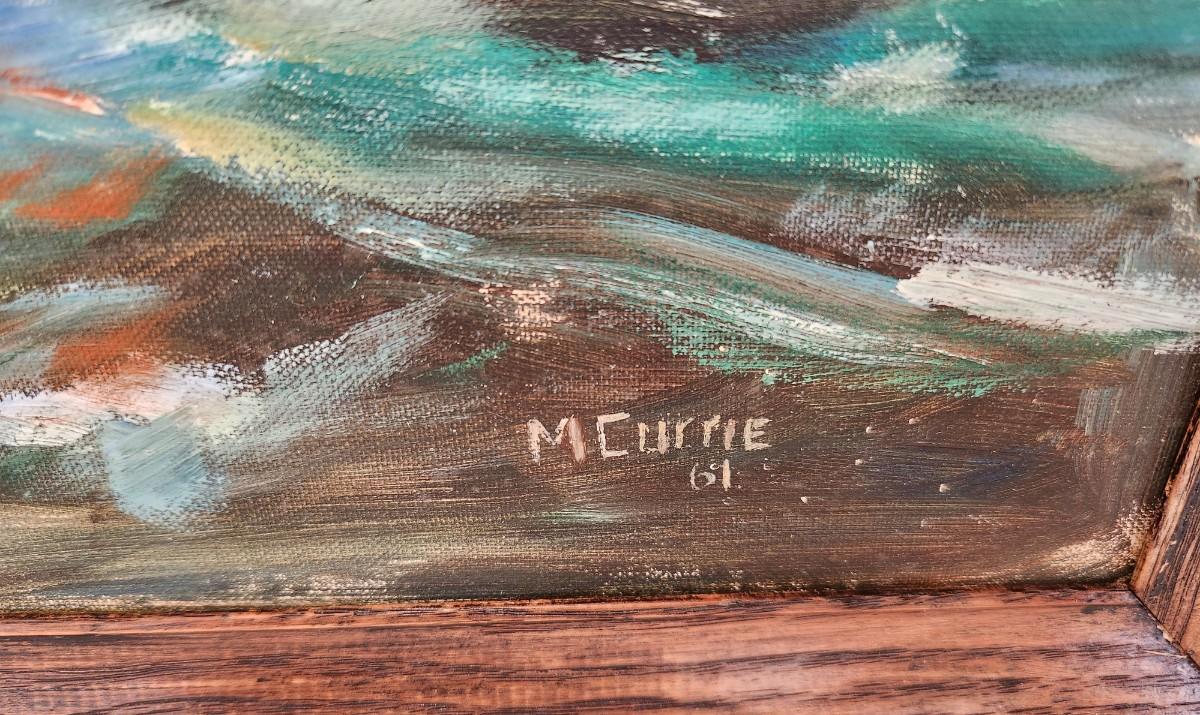 Nicely done mid-century original oil on artist's board, signed "McCurrie '61". Framed, 23" x 19".