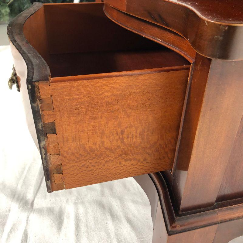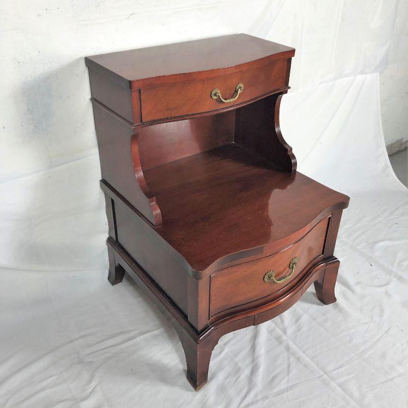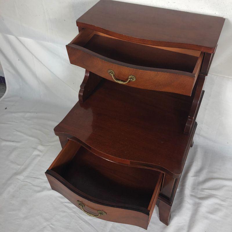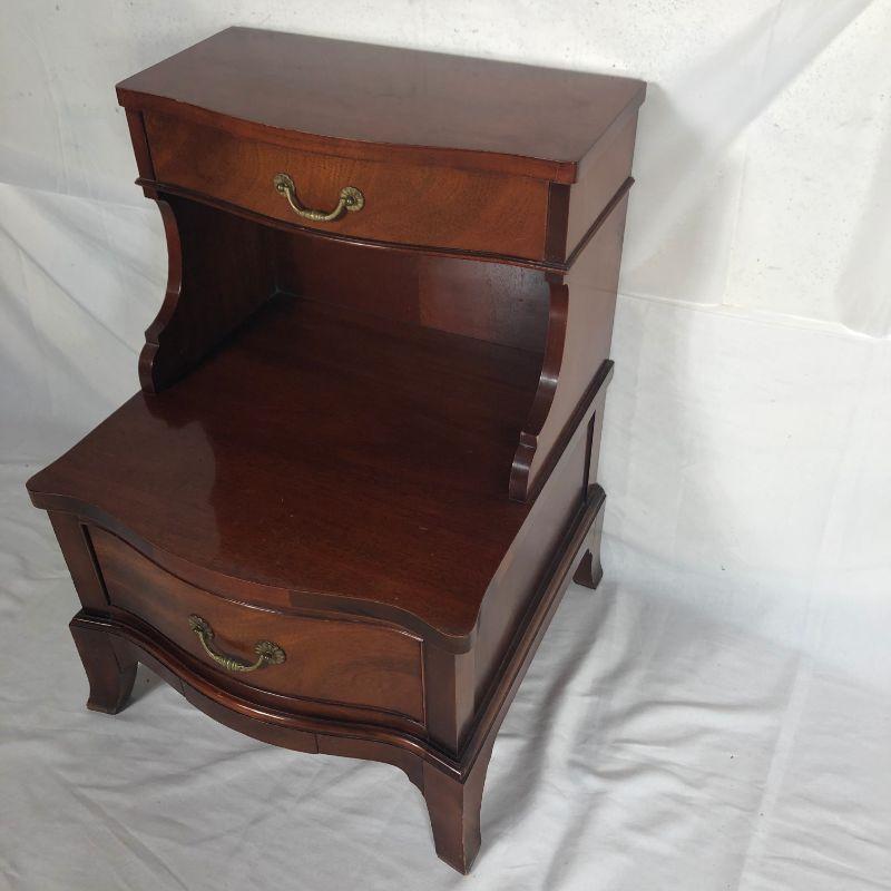 Bought at an antique store in NJ a cherry wood solid end table or night stand. Dove tailed construction ~ 2 drawers 20" wide x 20" deep x 28.5" high