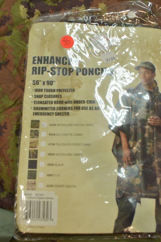 Three camo ponchos and a camo hat. New.