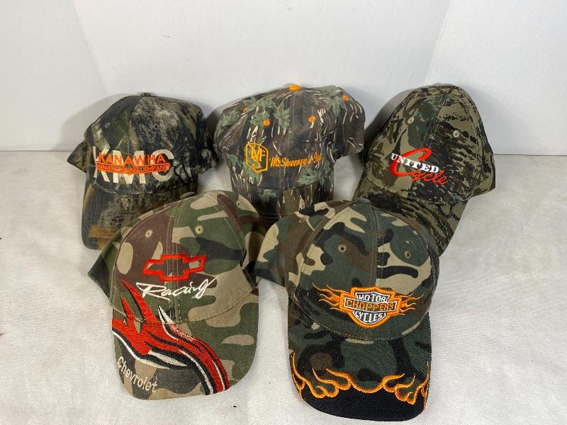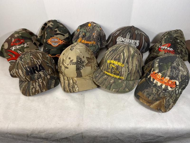 Lot# 40 s Lot of 9 Camouflage Hats Chevy NRA SnapBack Velcro