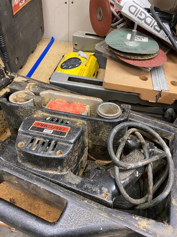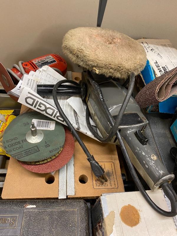 Craftsman electric sander, sandpaper wheels, Makita electric sander, sand paper, electric buffer, dremel.