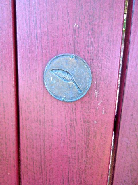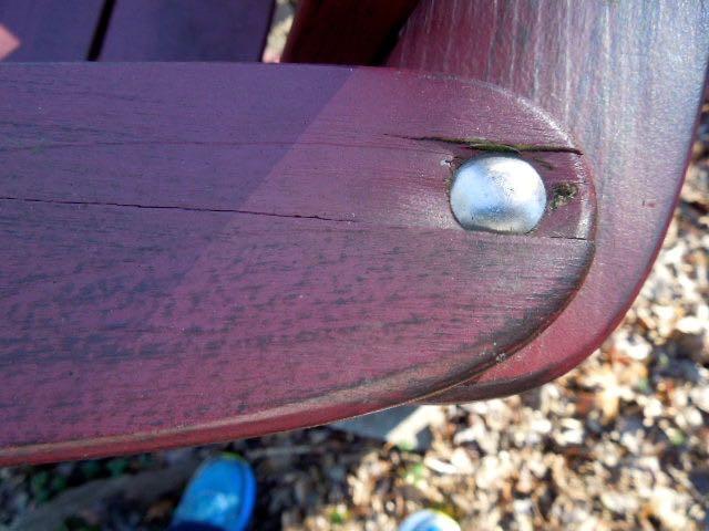 In very good condition. Chairs have builtin bench footrest and feature a brass leaf emblem. Need light hosing down. Painted wood. Cinder blocks included. One indentation on arm around screw.