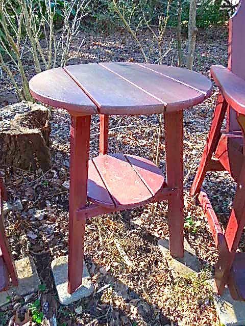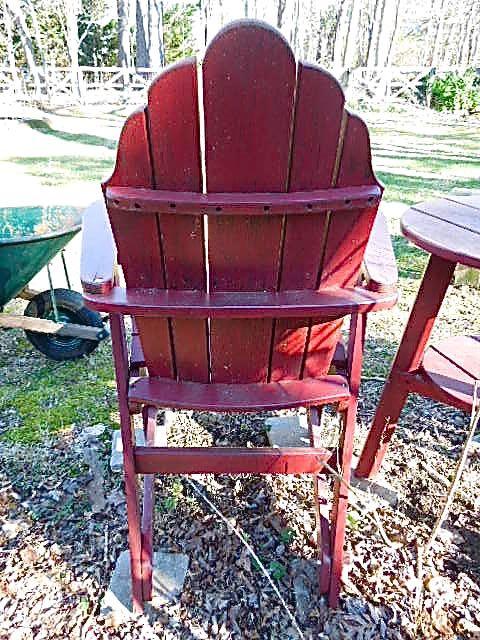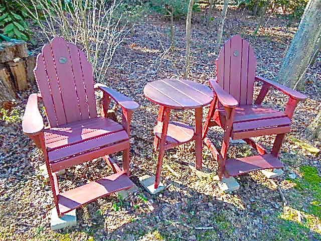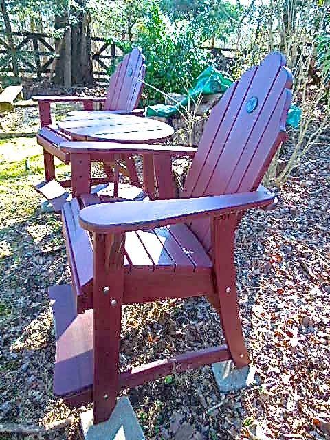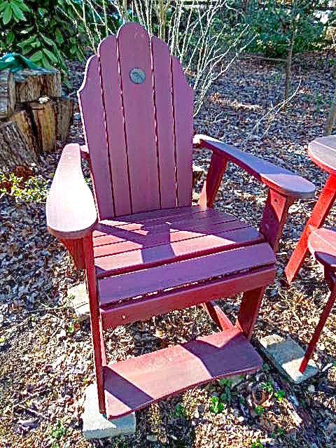 Lot 40: Two Tall Adirondack Style Red Chairs and a Table