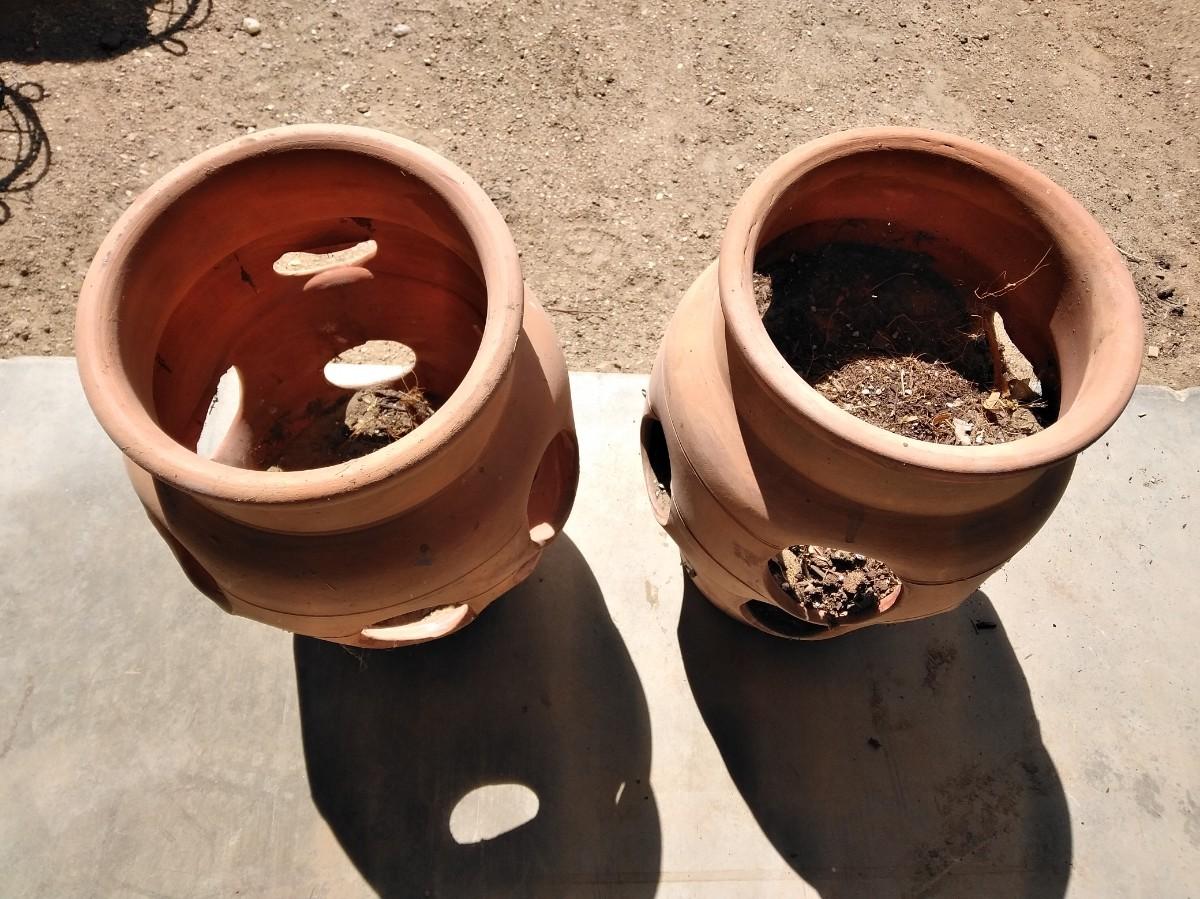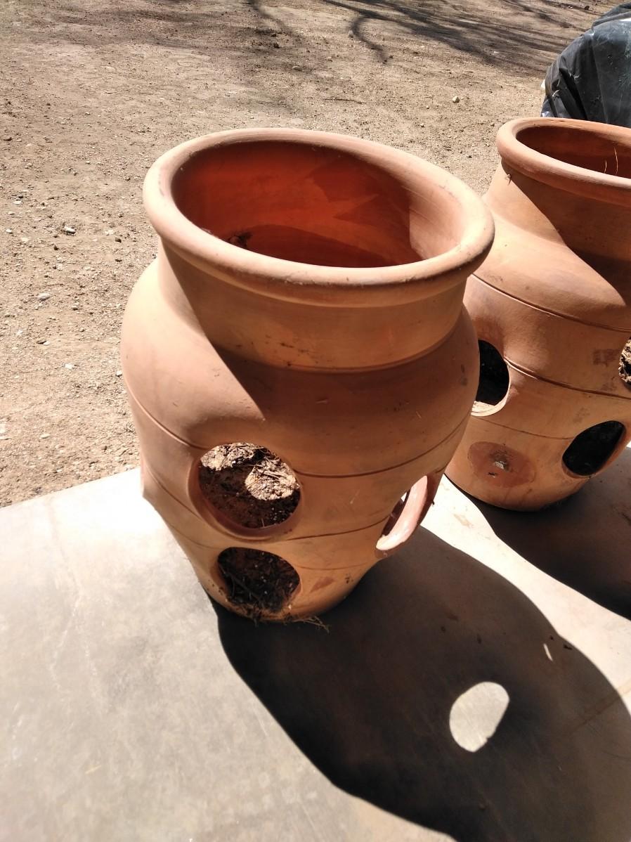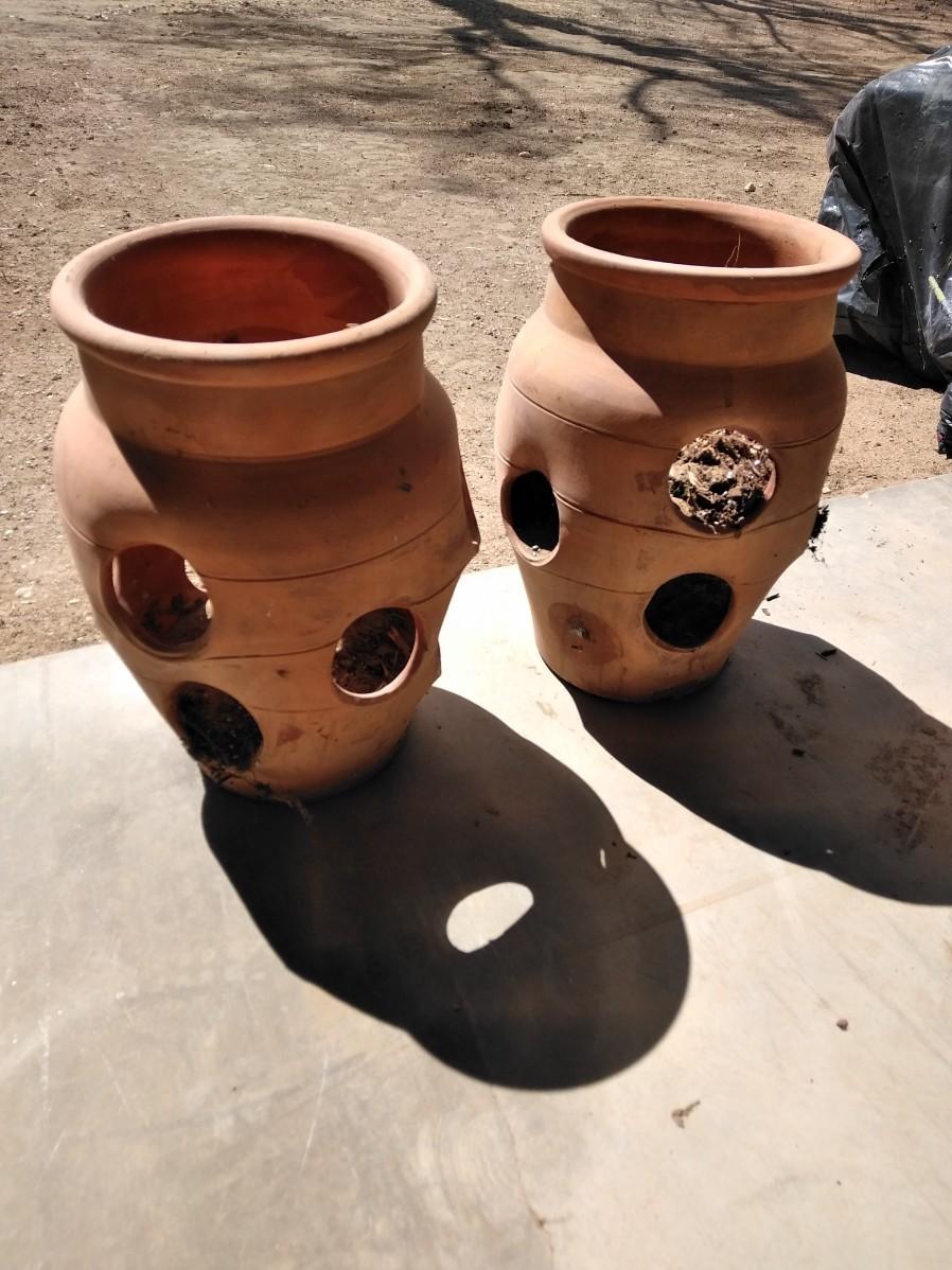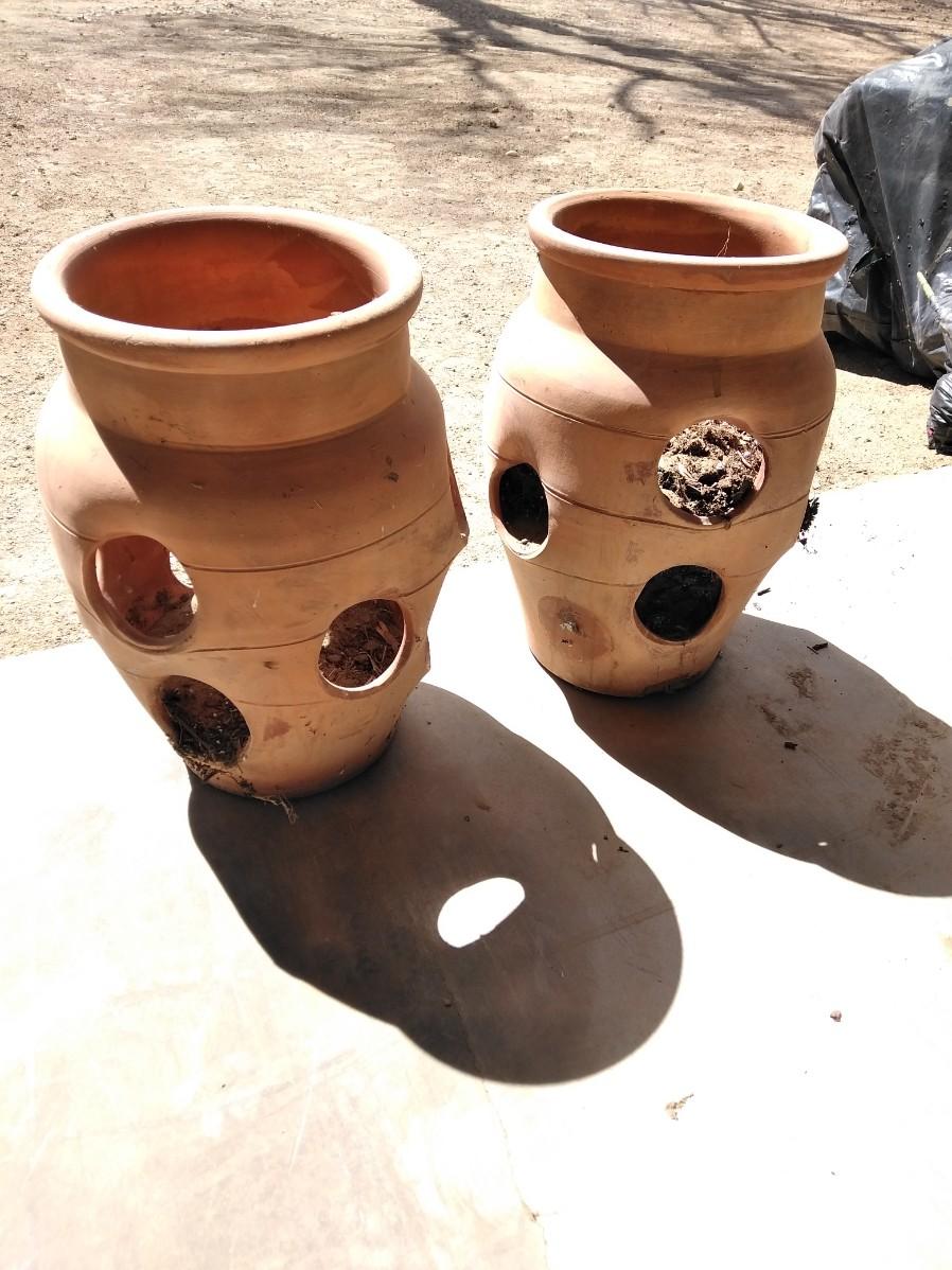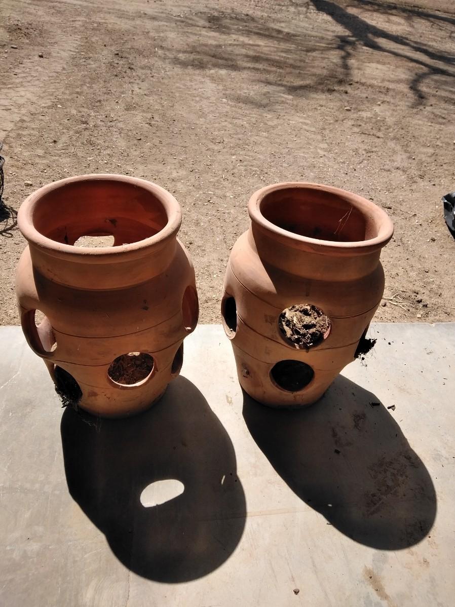 TWO 16" TALL 8" TERRACOTTA STRAWBERRY POTS