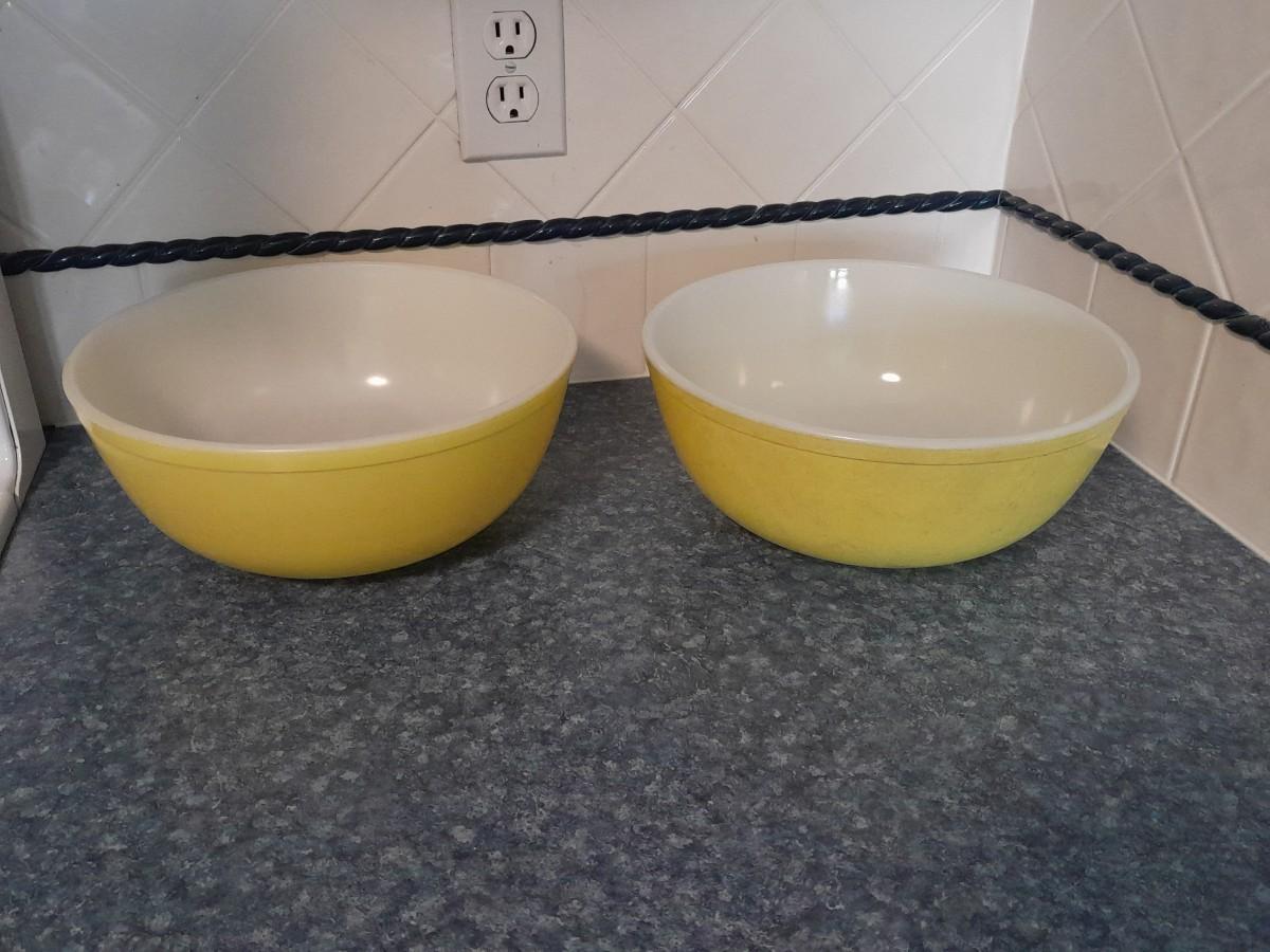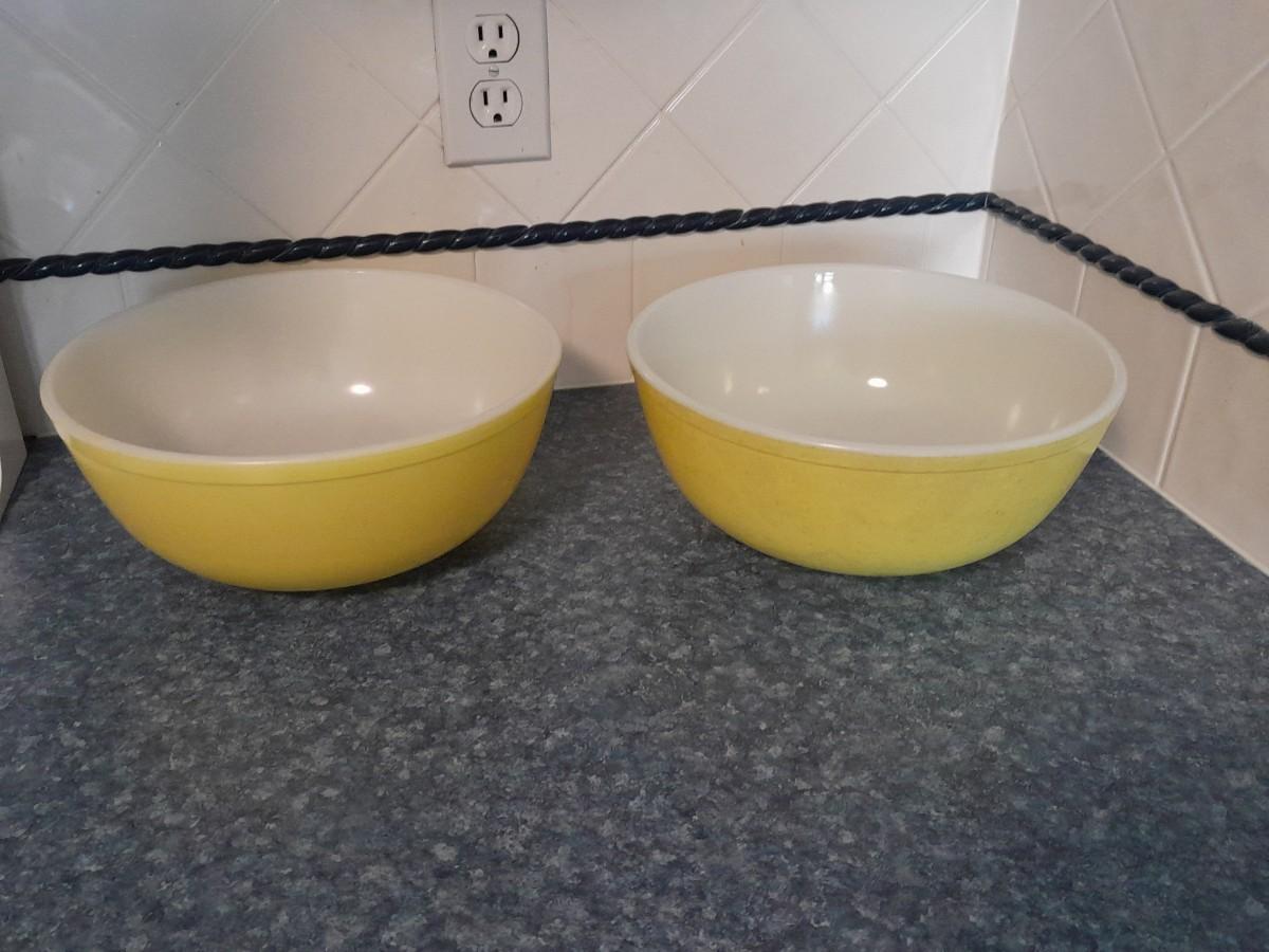 LOT 40 TWO YELLOW PYREX BOWLS