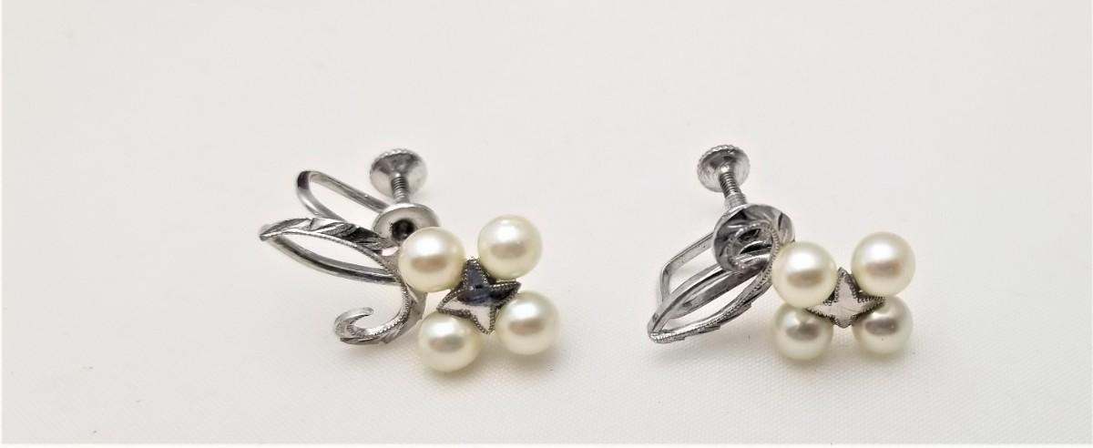 Lot #40  Vintage Cultured pearl/sterling screwback earrings in original box.
