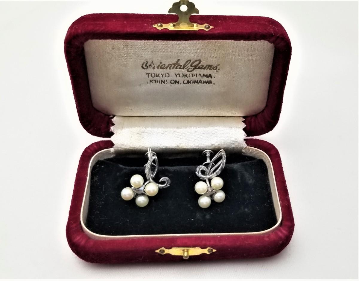 Lot #40 Vintage Cultured pearl/sterling screwback earrings in original box.