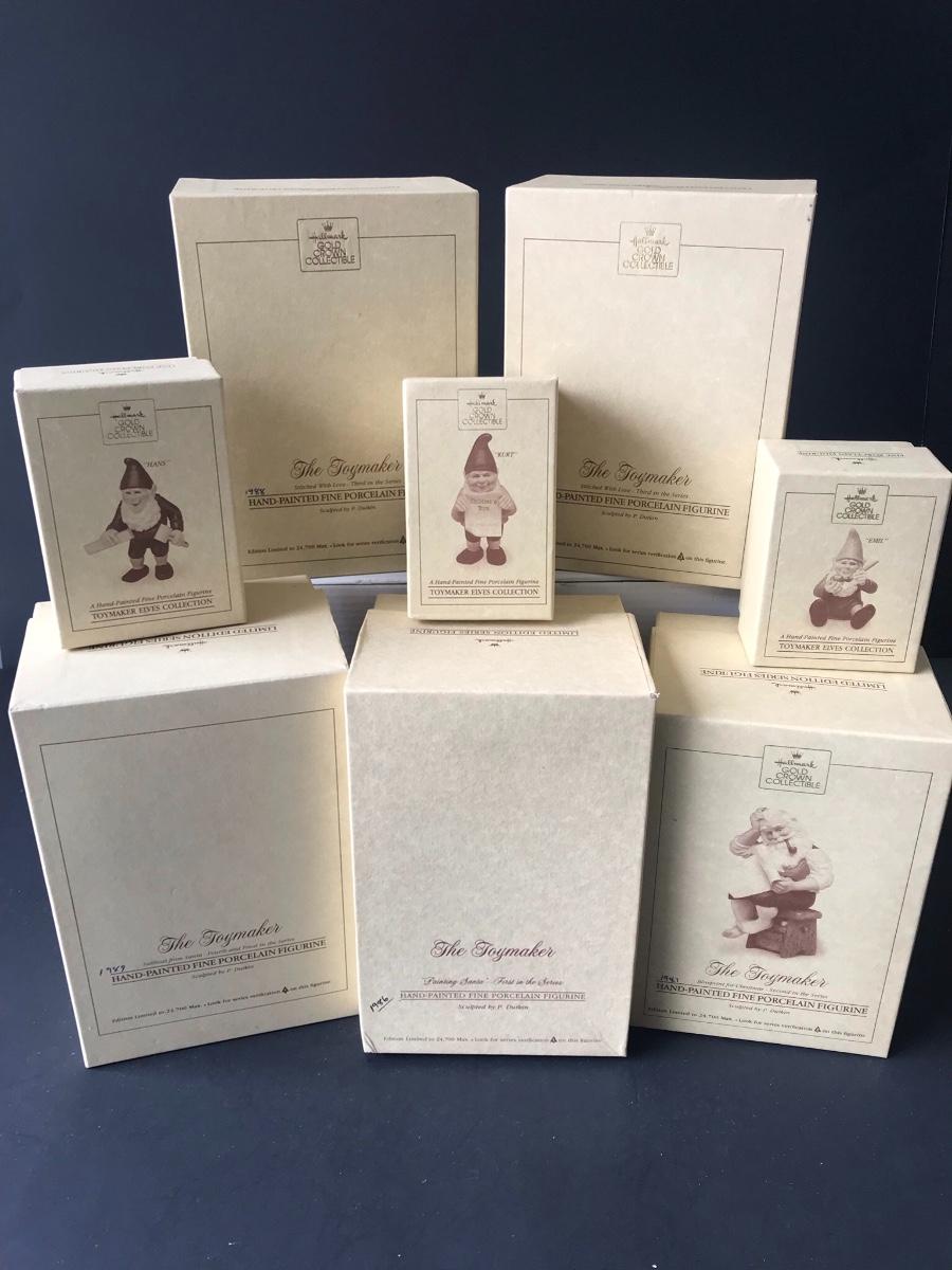 The Toymaker - Santa & Elves Hallmark Keepsake Christmas Ornaments. All Holiday items in this auction are as-seen. The client collected a lot of holiday pieces and some are new in box, some were displayed once and come with original box, and some have been displayed and come with no box. They are all pre-owned in some fashion and have been stored in an attic or on shelf in library. Please see all pictures. The pictures show condition, measurements if taken, and what is included in the lot. Due to the large amount that we photograph and the time frame, we are not always able to take measurements. All items unless noted, are pre-owned and have been used. Thank you