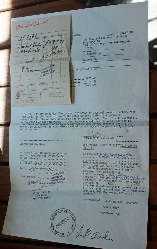 Custom made in Europe. Features 2 lower sliding doors for display. Measures 31" High x 33" wide x 8 1/2" deep