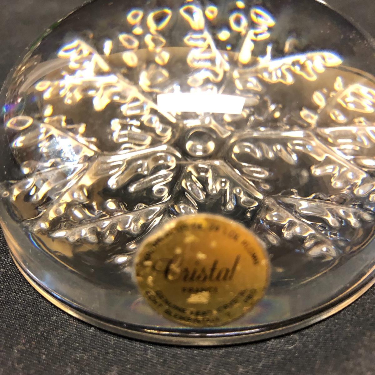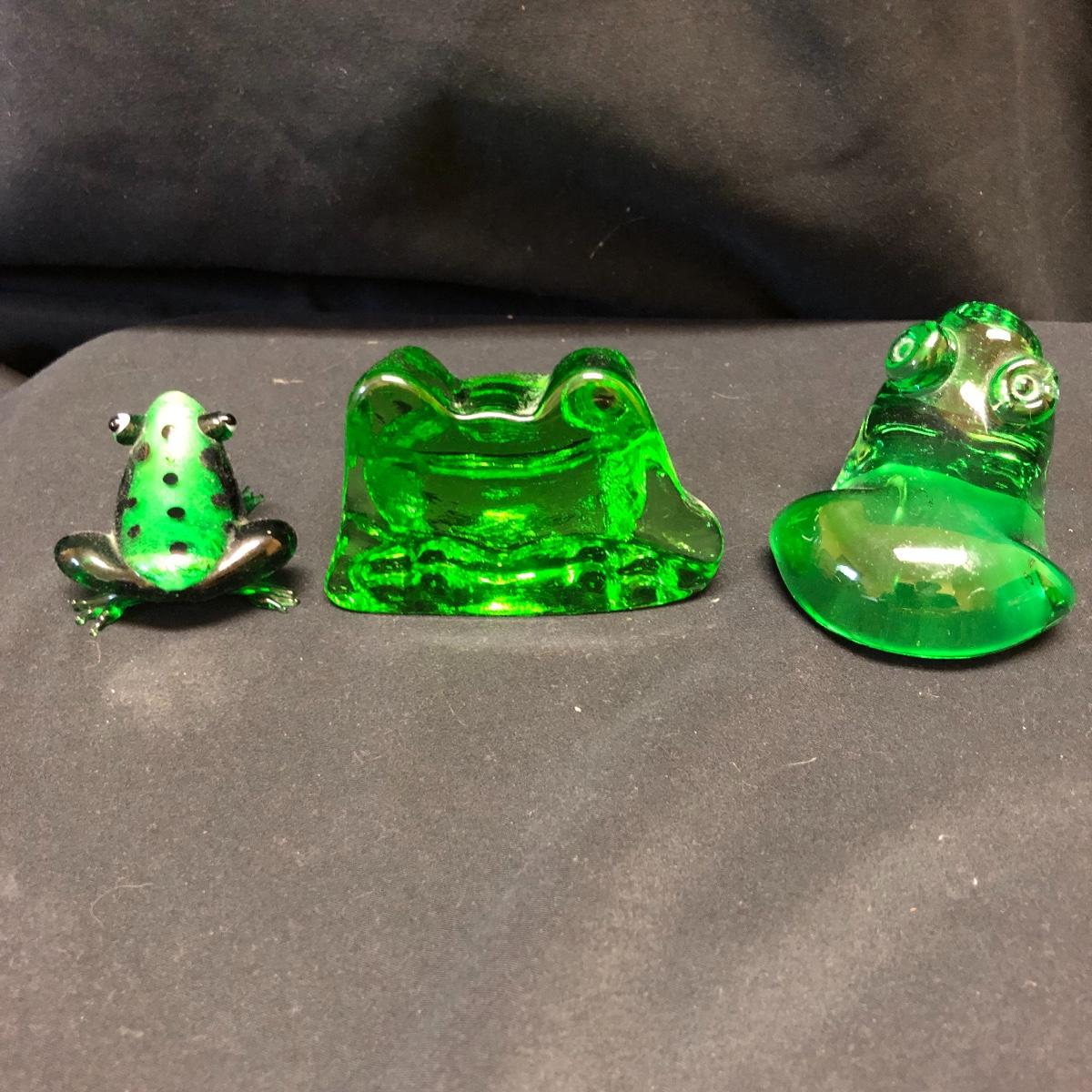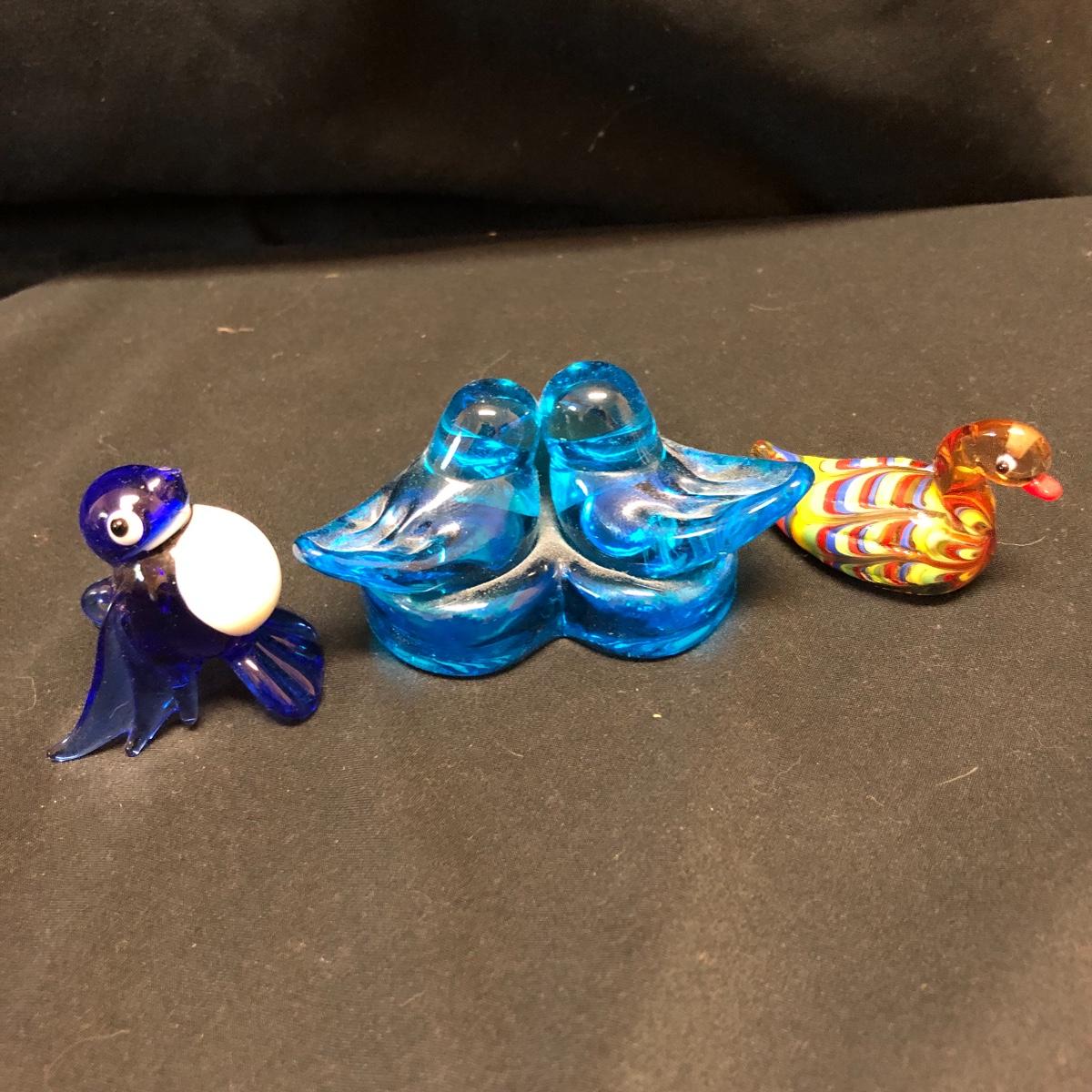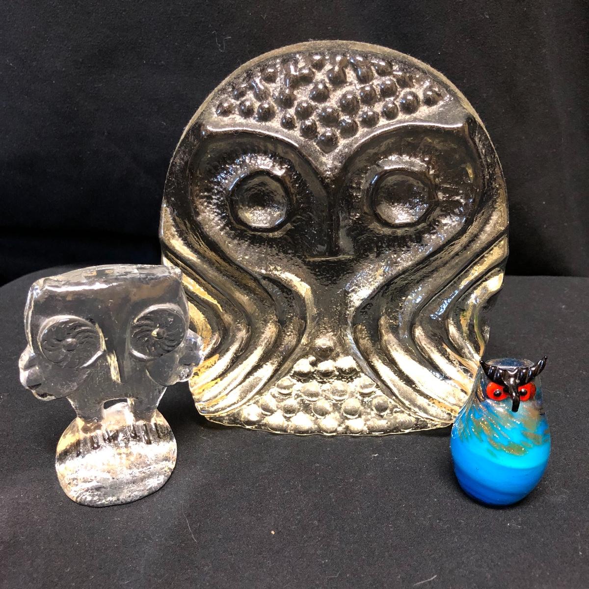 Add some decorations to your home and office with this array of paperweights and figurines. This lot includes a stone apple, Cristal lead Crystal snowflake paperweight, figurines in shapes of dolphin, frogs, birds, cat, owl, and what appears to be a hand blown egg shaped paperweight and more. Dolphin measures 3” x 8” x 3.5”.