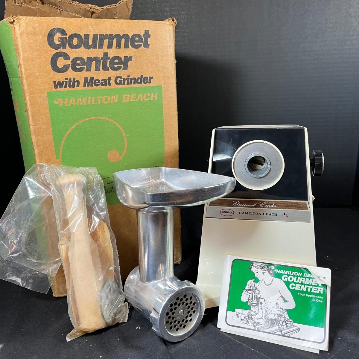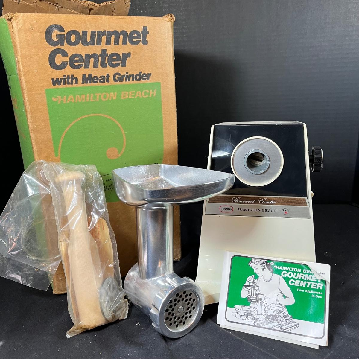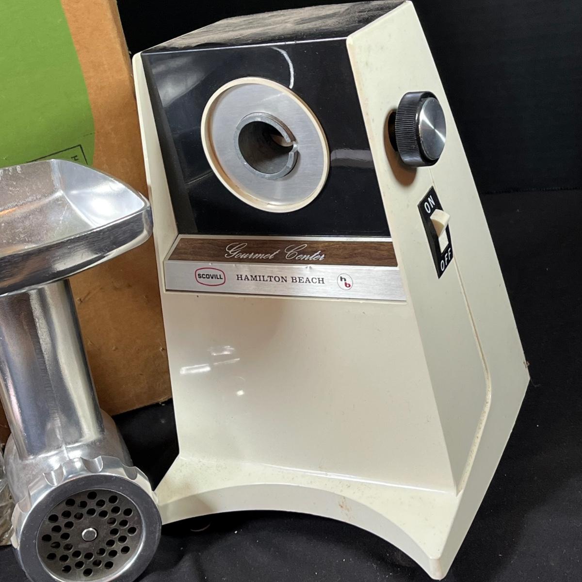 LOT 401D: Vintage Hamilton Beach Gourmet Center Meat Grinder with Original Box