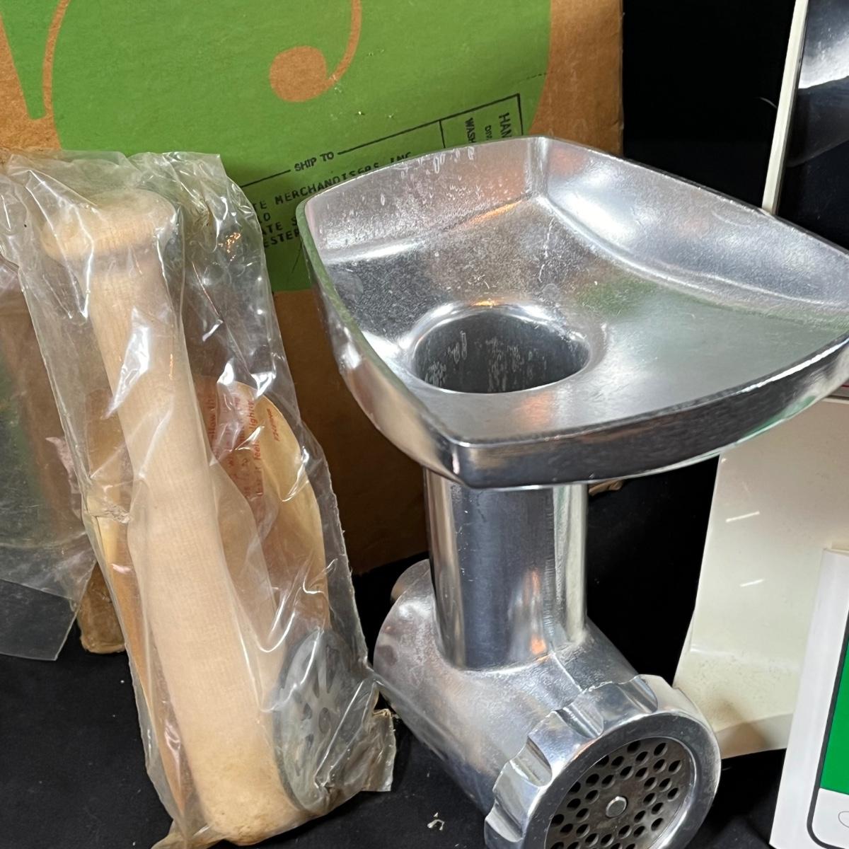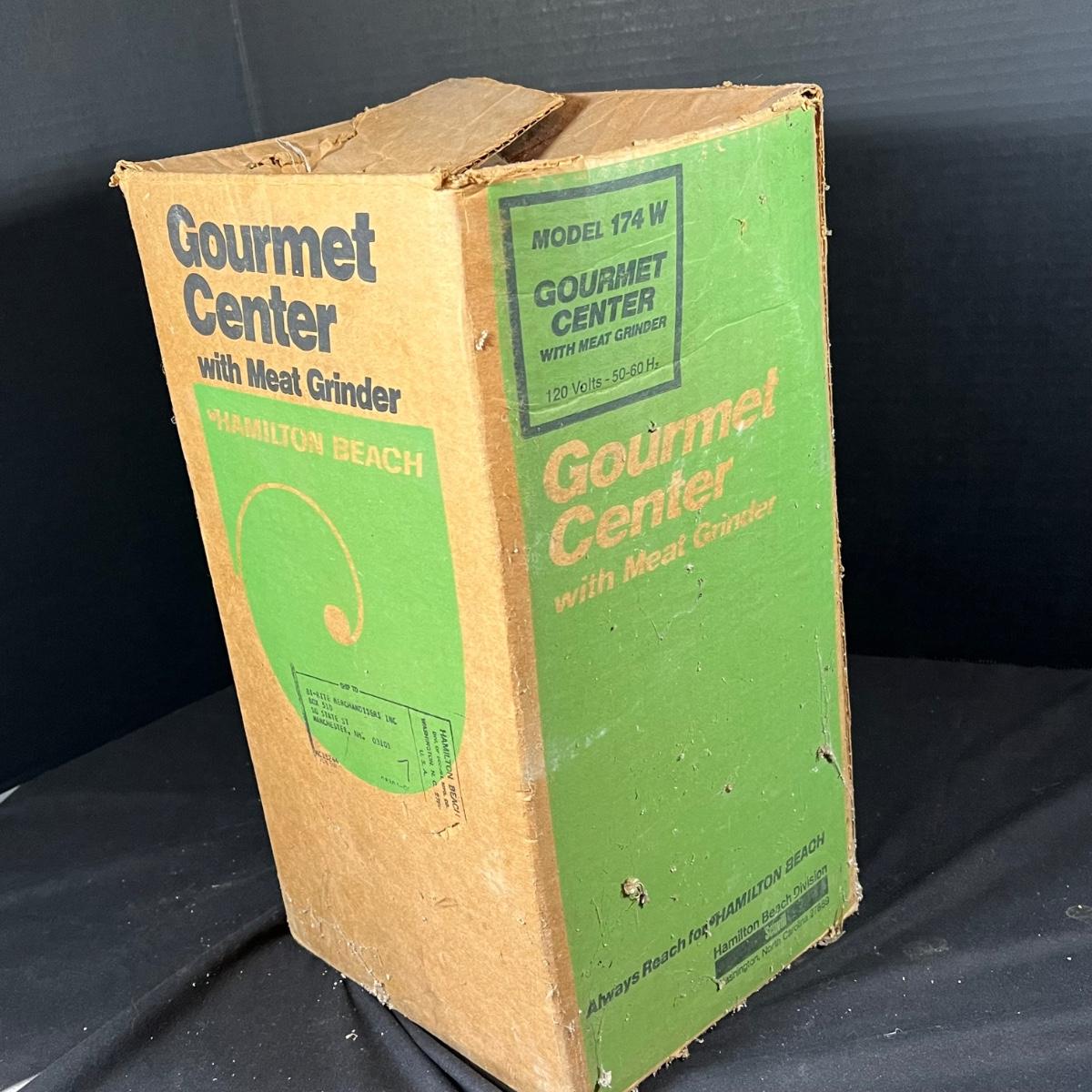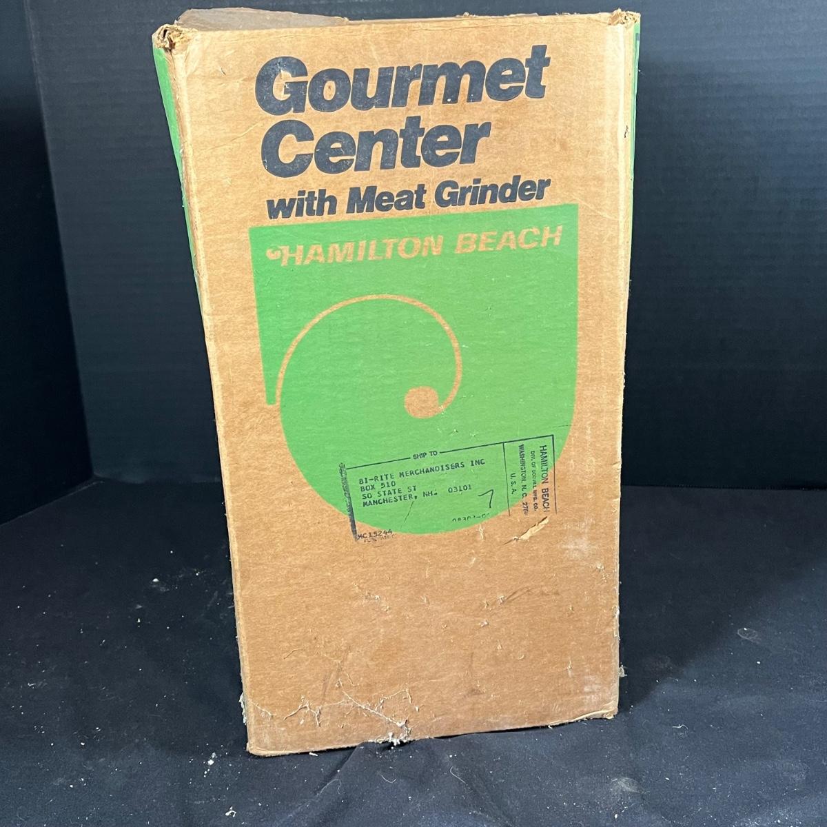 LOT 401D: Vintage Hamilton Beach Gourmet Center Meat Grinder with Original Box