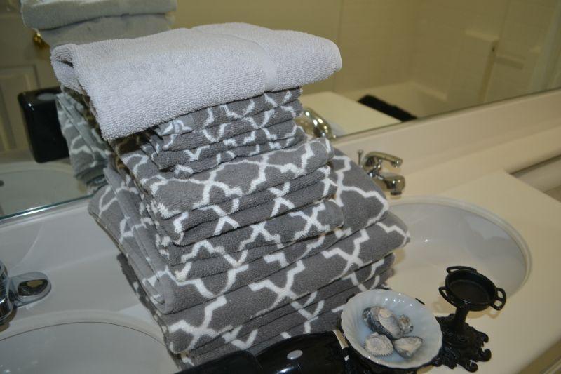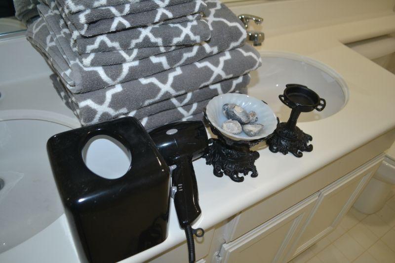 TOWELS AND HAIR DRYER