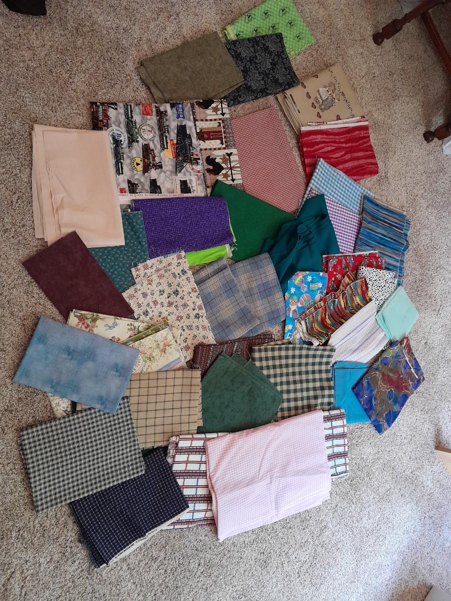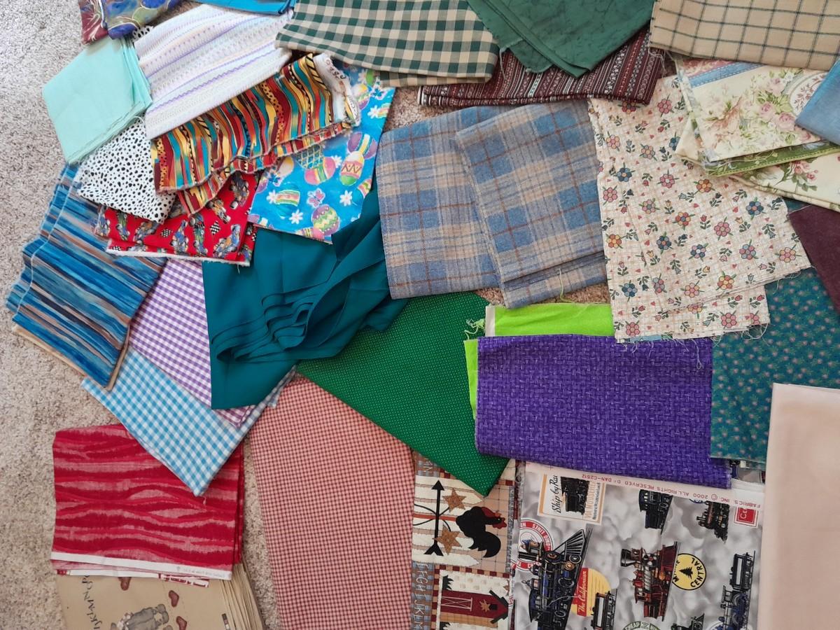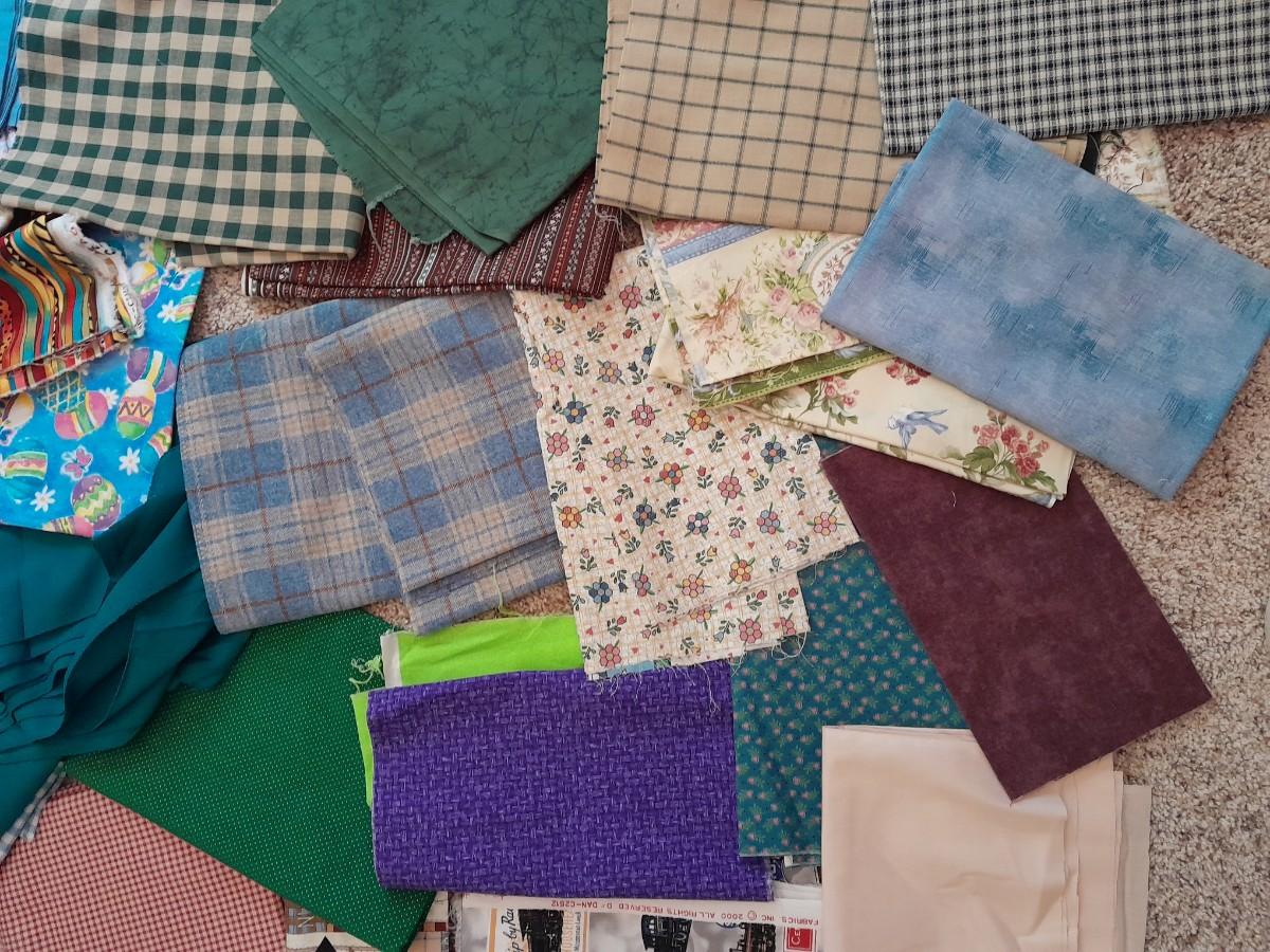 LOT 401 FABRIC SCRAPS WITH MANY DIFFERENT PRINTS