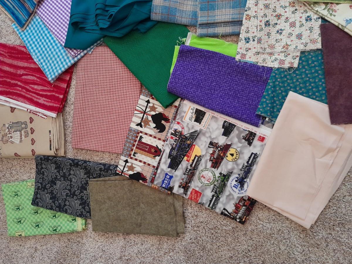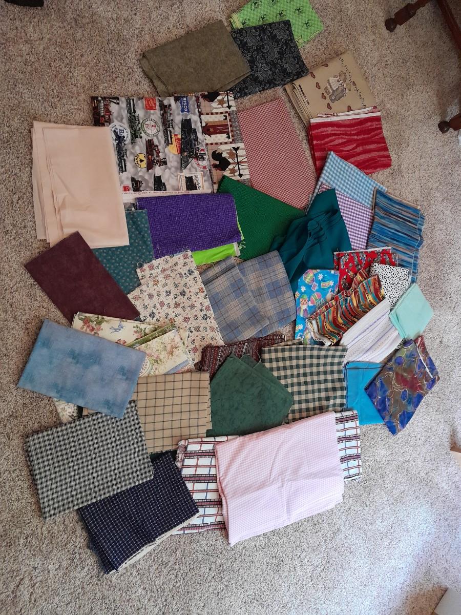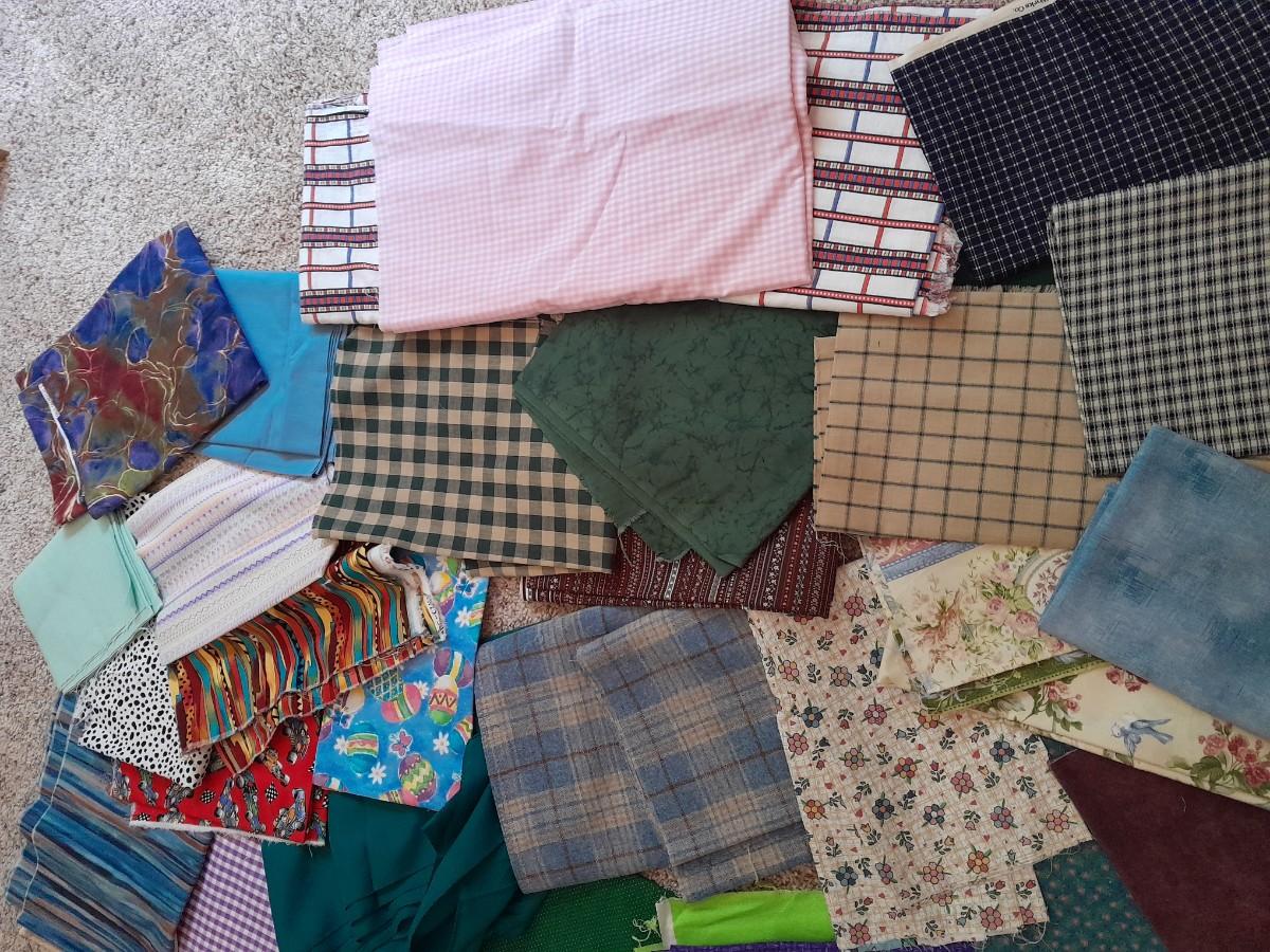 LOT 401 FABRIC SCRAPS WITH MANY DIFFERENT PRINTS