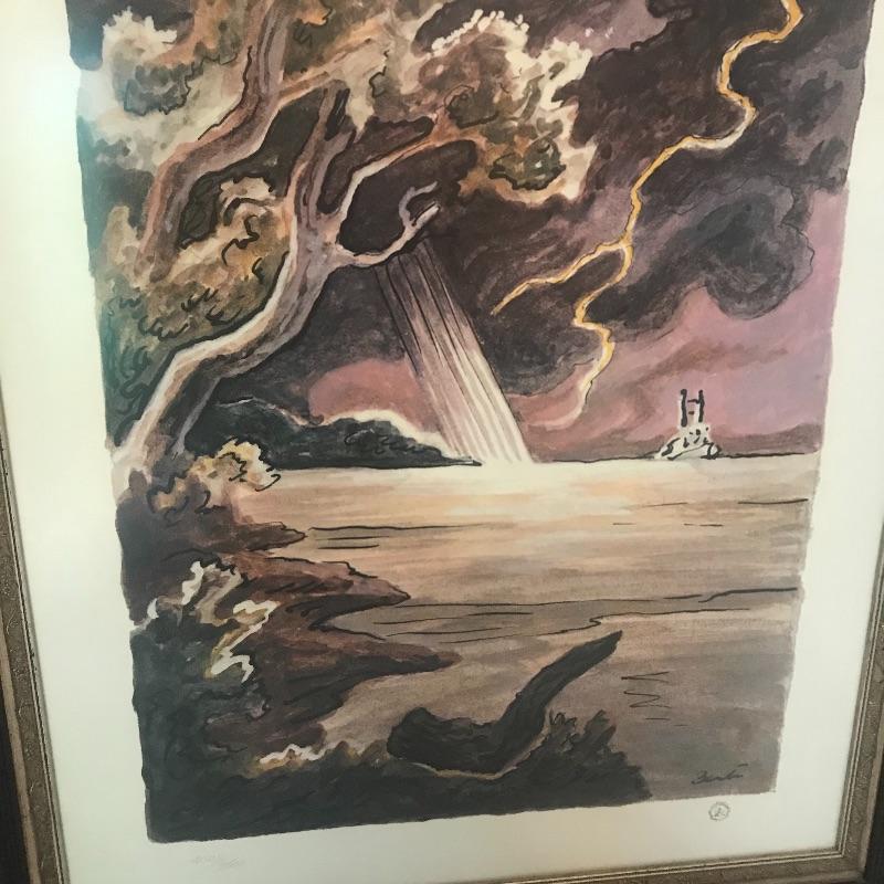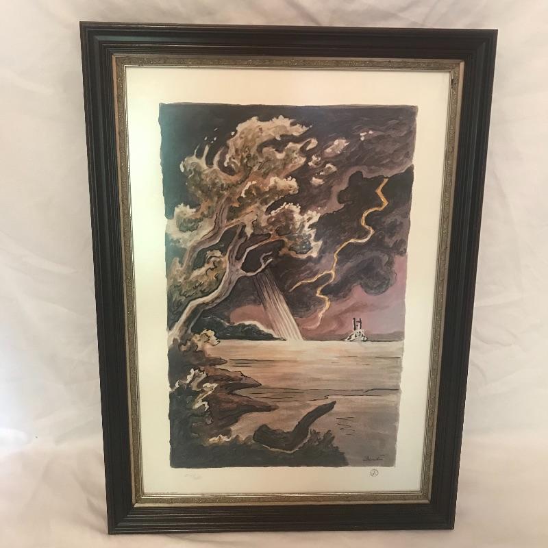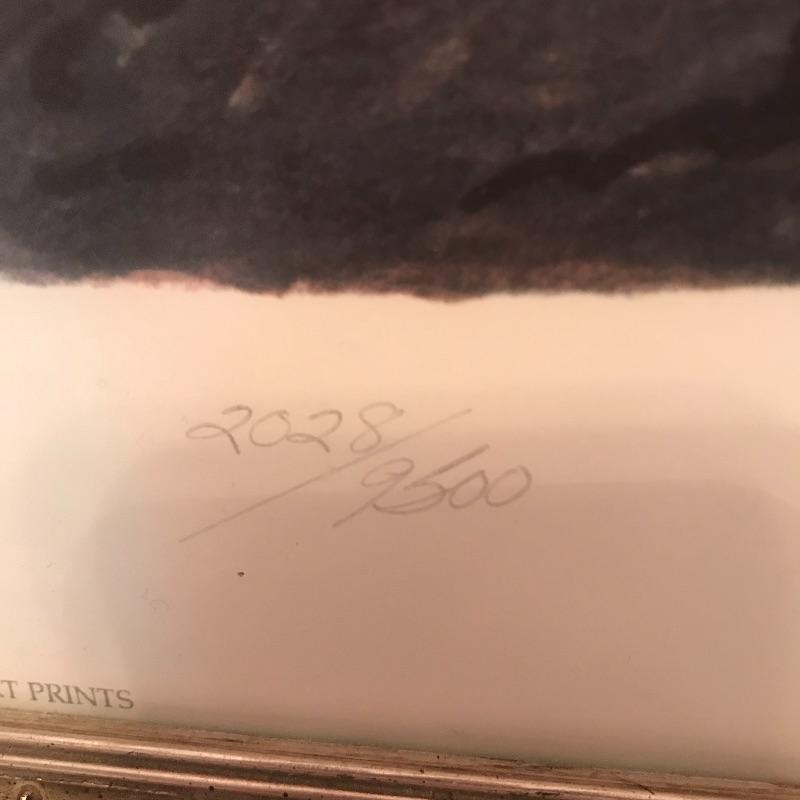Numbered 2028/9500 Heritage Club Print of stormy river and boat. Frame measures 21.5” x29.5”. Shipping available, please note shipping Art is costly, best to get a quote from UPS Store with measurements first.