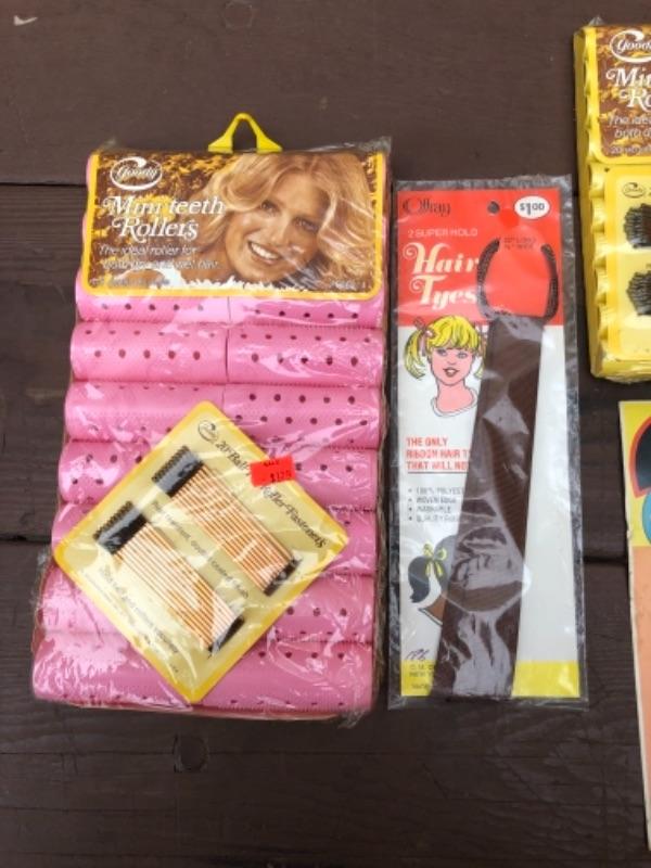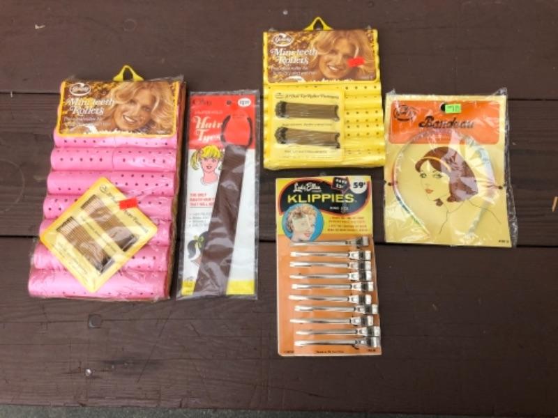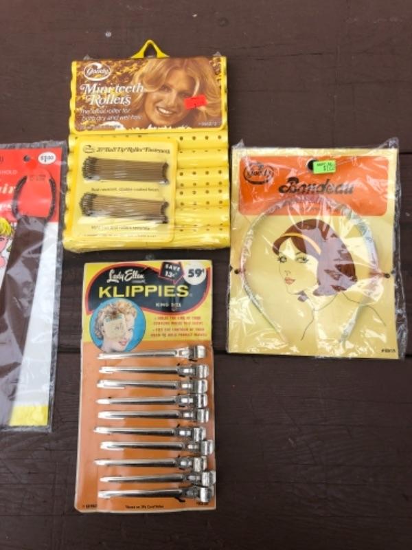 Lot 401: Lot of Vintage Hair Accessories: Goody Bandeau, 2 Mini Teeth Rollers, Offray Hair Ties, Made in USA , 1960-70’s,