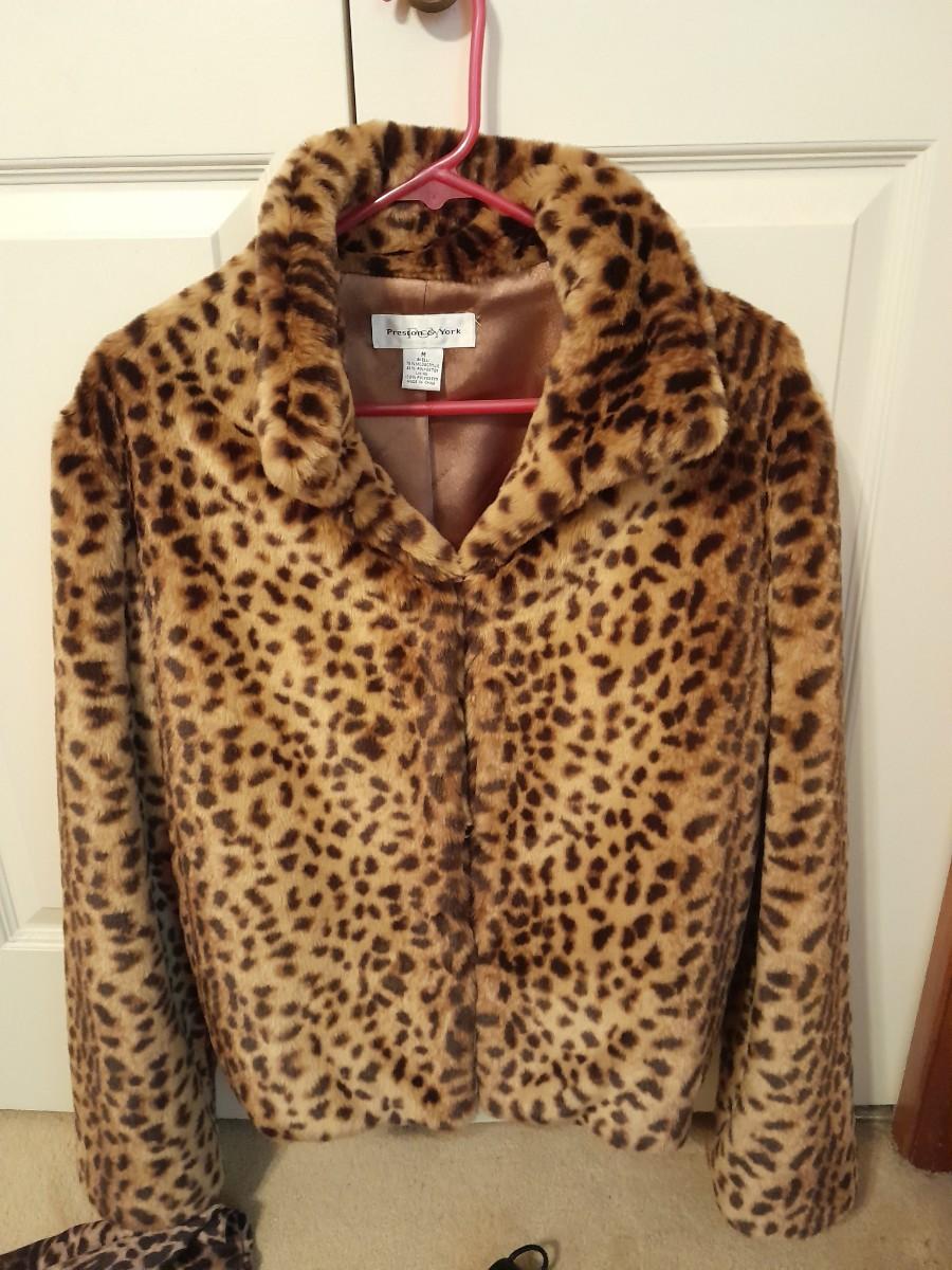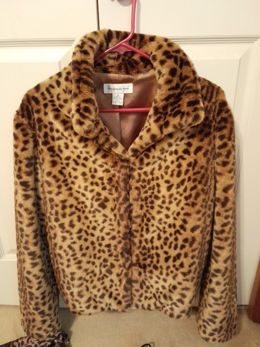 LOT 401 PRESTON & YORK CHEETA PRINT COAT WITH GLOVES AND MORE