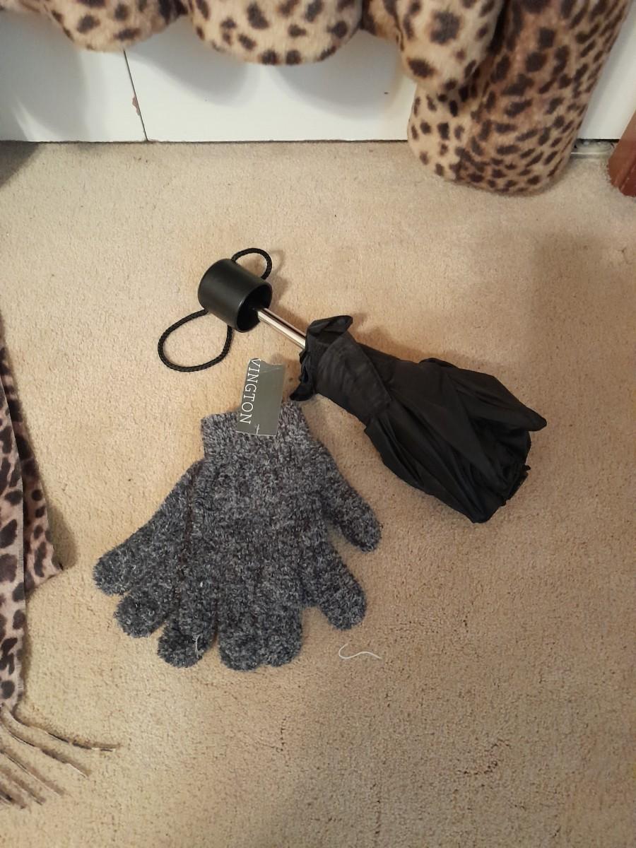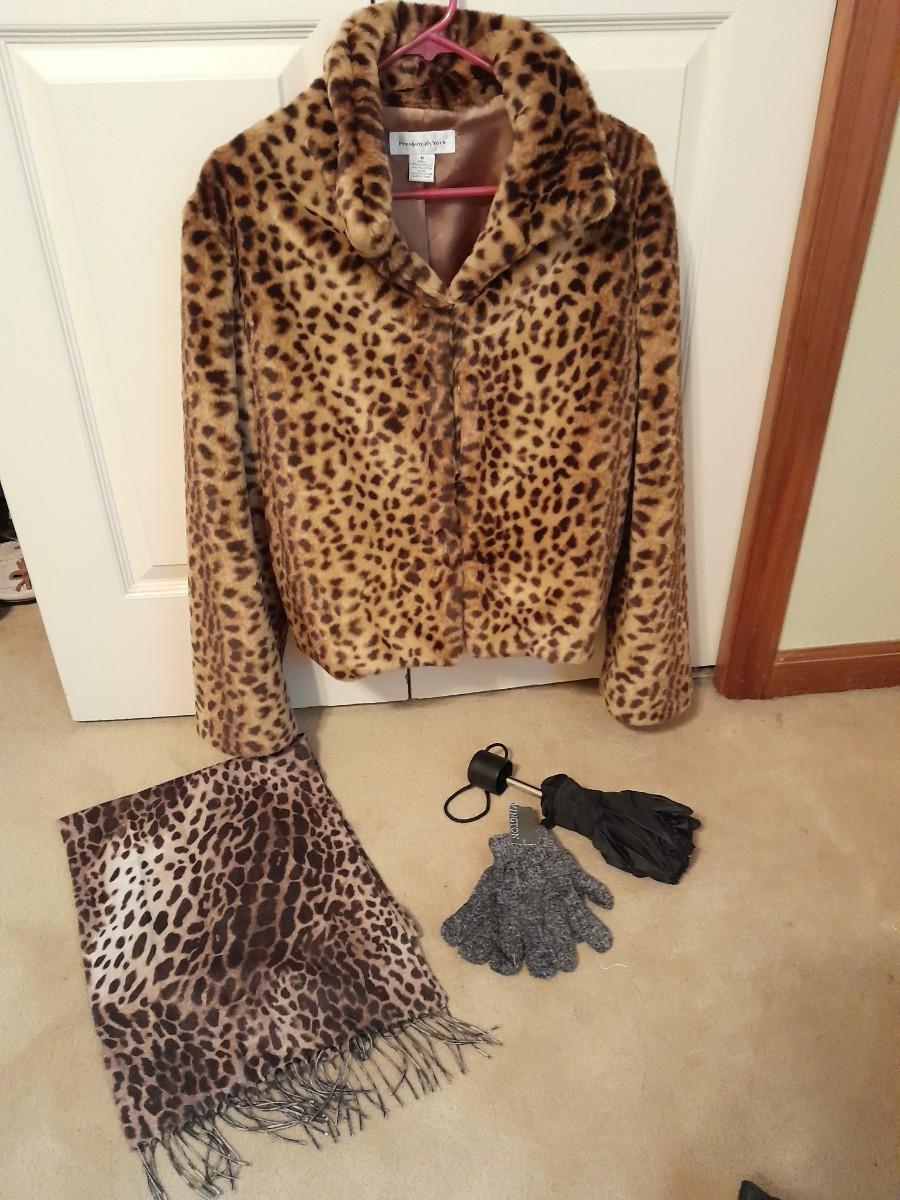PRESTON & YORK CHEETA PRINT COAT WITH GLOVES, SCARF, AND UMBRELLA