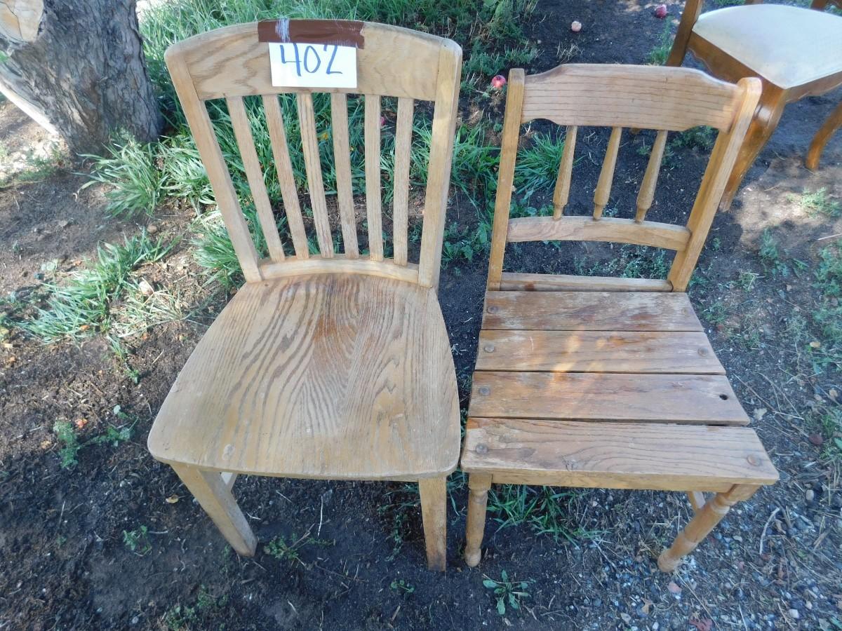 LOT 402 PAIR OF WOODEN CHAIRS, NON MATCHING-SHOP