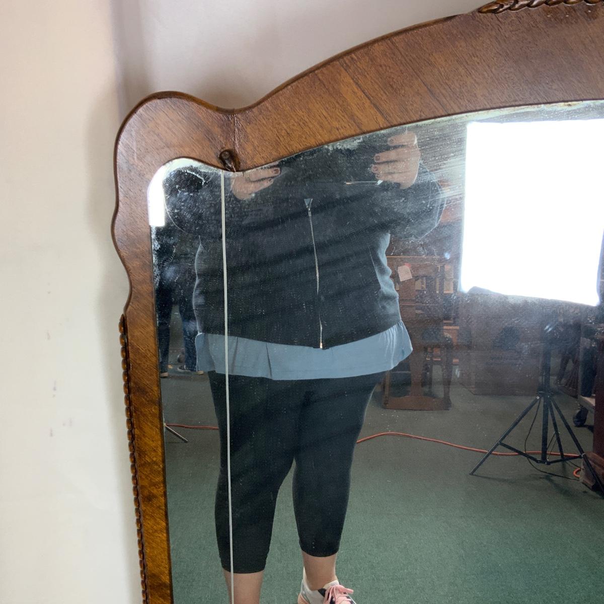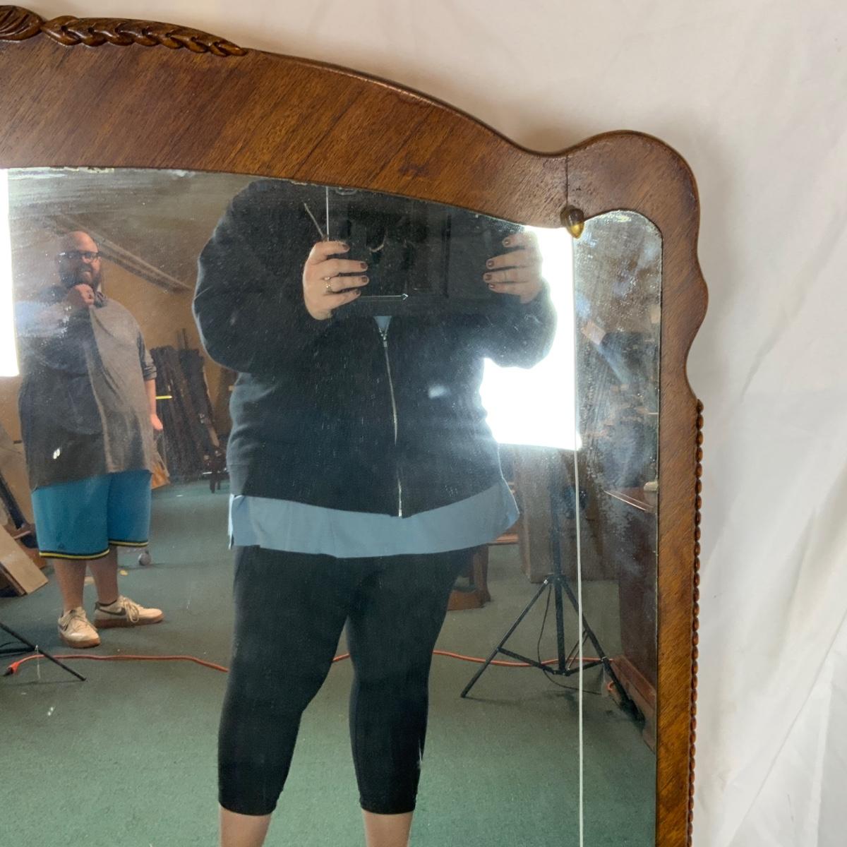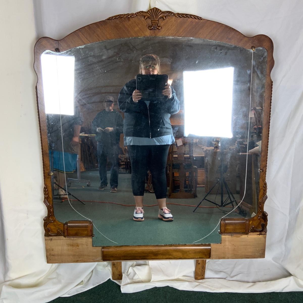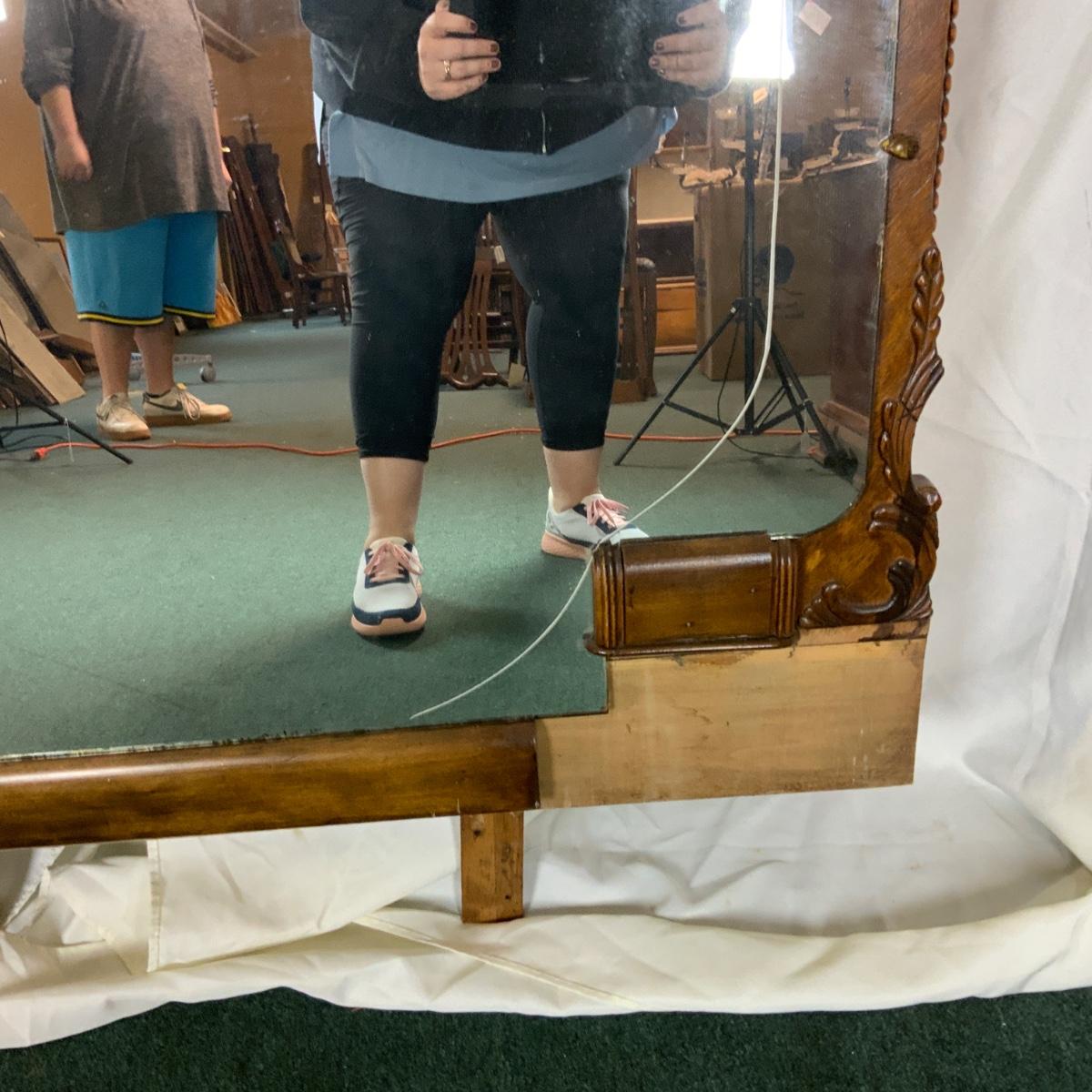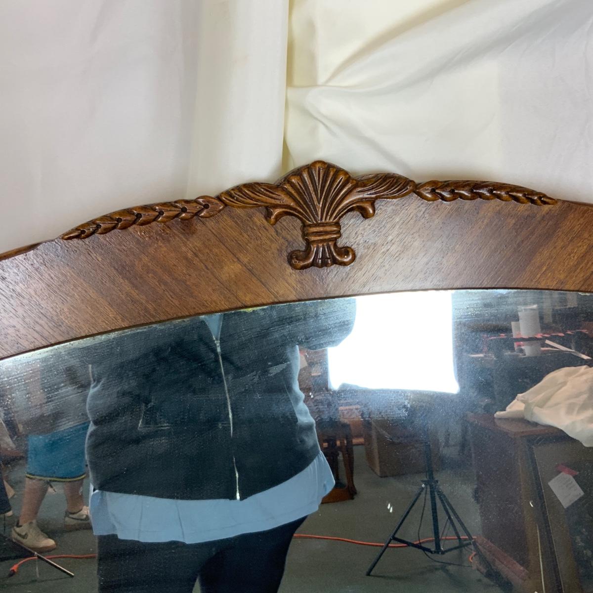 Elegant Vanity Mirror. Beautiful wood and wonderful carvings. //::\\ Please see photos for details and condition. No attempt has been made to hide any imperfections. All items listed in this auction are warehouse items, and need to be cleaned. A majority of the items need restoration as well. All items are sold AS IS and WITHOUT GUARANTEE. If you are uncertain about an item, DO NOT BID. Due to the nature of this online auction in-person inspection is HIGHLY recommended. All Sales are FINAL. Pick Up Times are FIRM. Please confirm with your own schedule that you can pick up in the scheduled times listed in the Terms and Conditions. Any questions please message the auctioneer. DO NOT Contact The Harp Gallery.