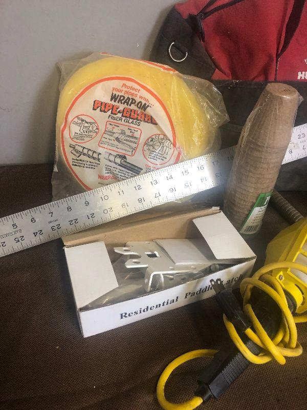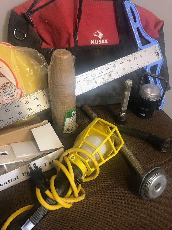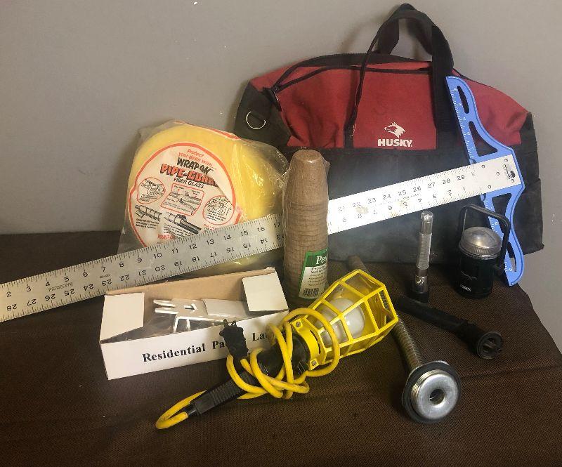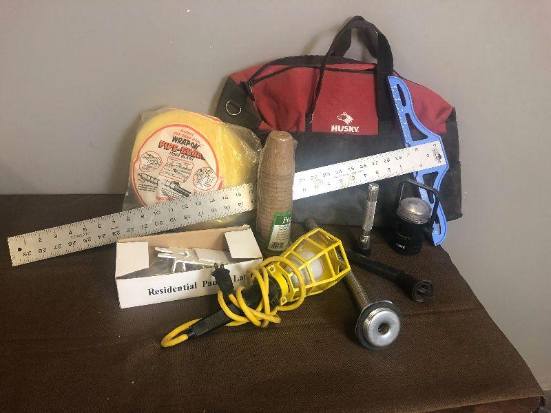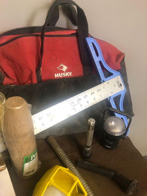 Lot #402 Lot of Garage items Husky Bag, light T-square