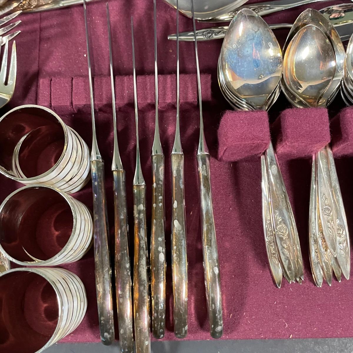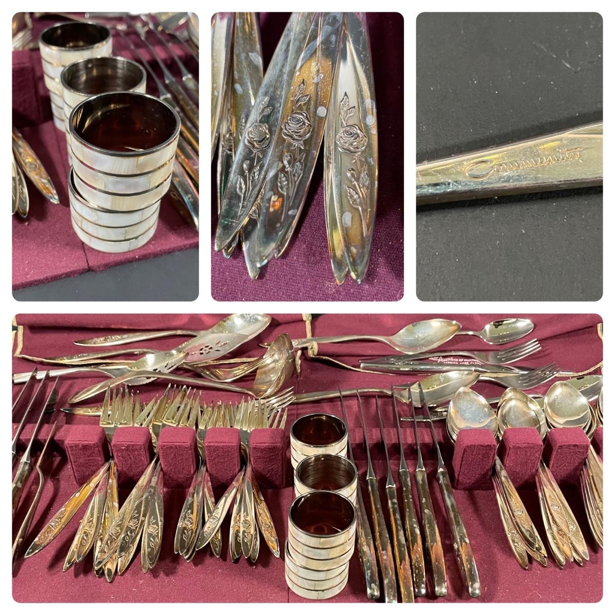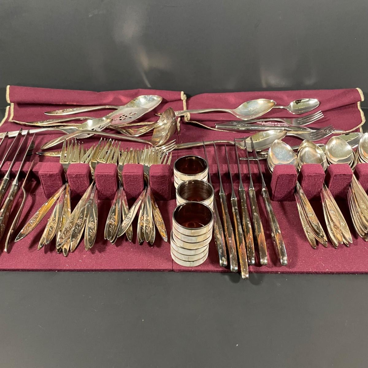 LOT 402D: Community Silver Plate Flatware/Napkin Rings Set