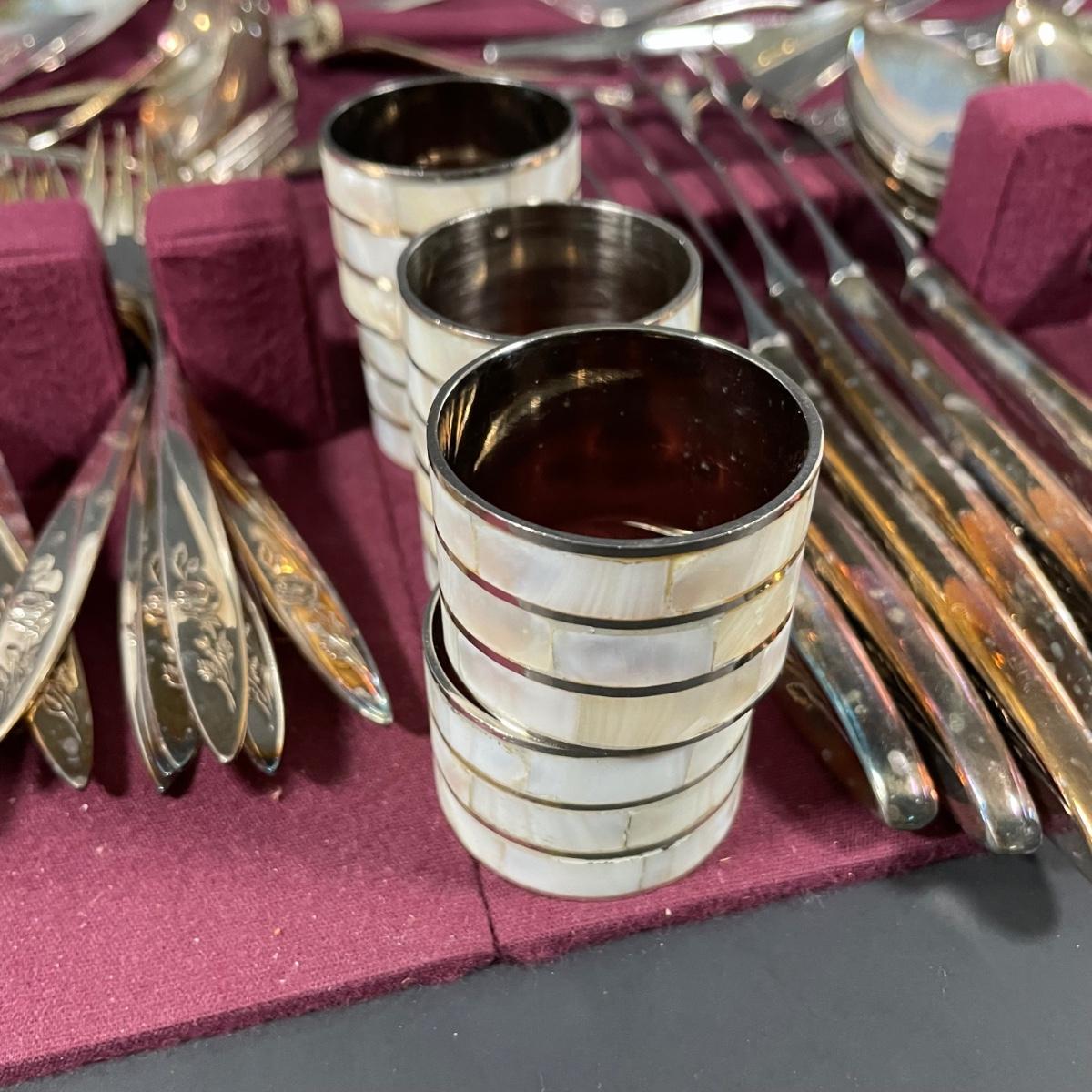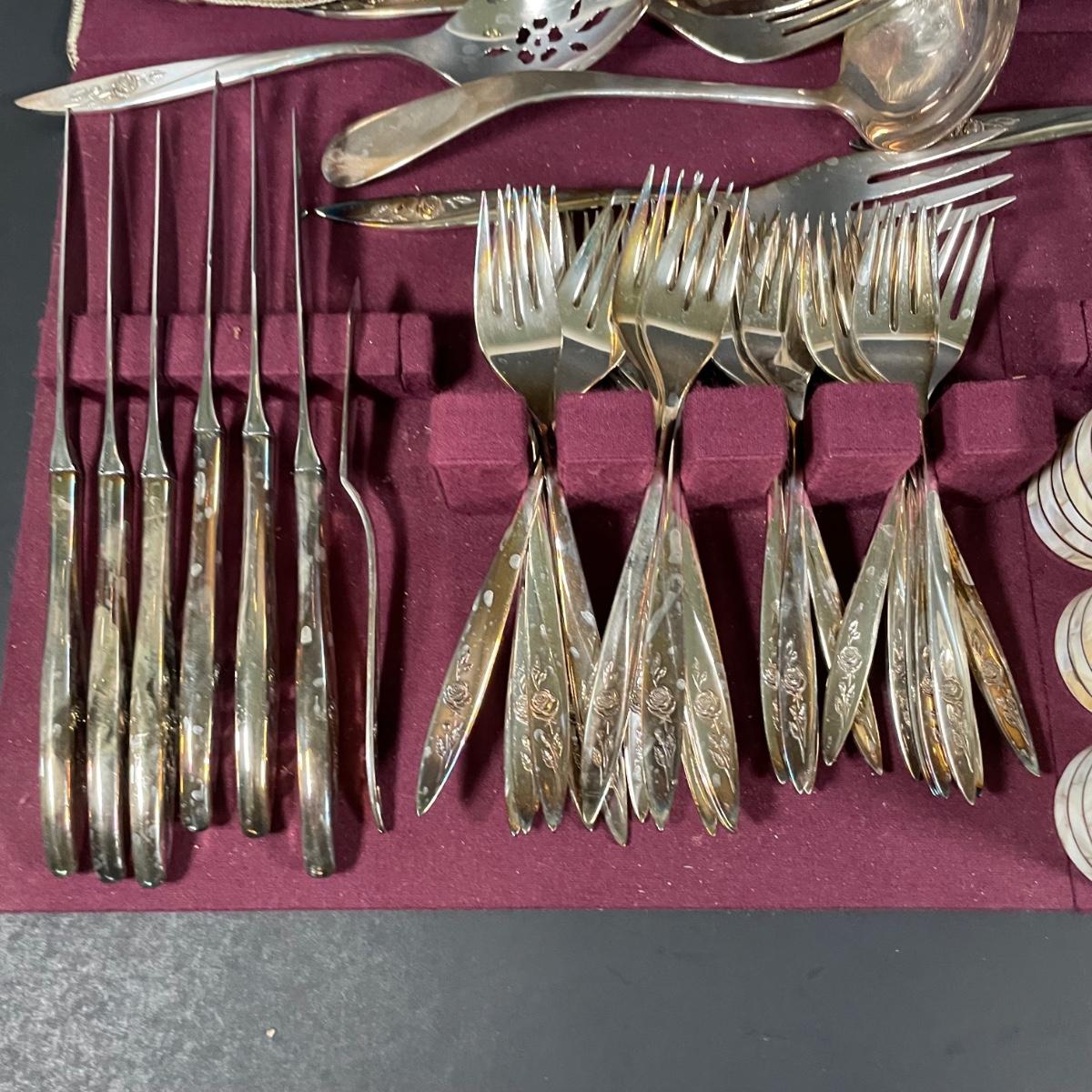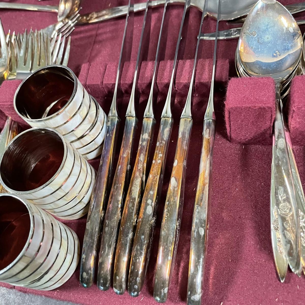 LOT 402D: Community Silver Plate Flatware/Napkin Rings Set