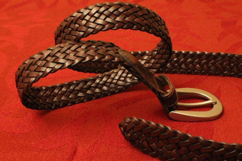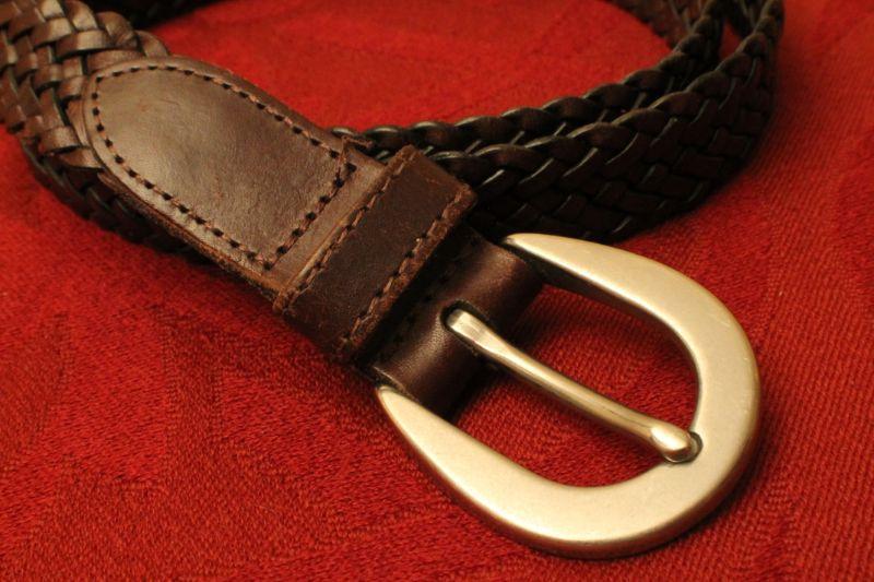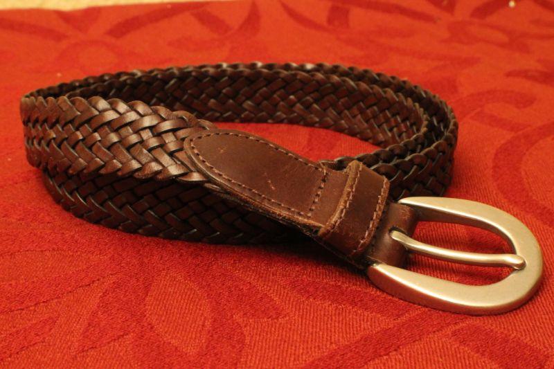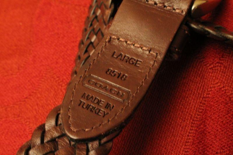LOT #403: COACHâ„¢ Brown Woven Leather Women's Belt w/ Silver Buckle SIZE LARGE