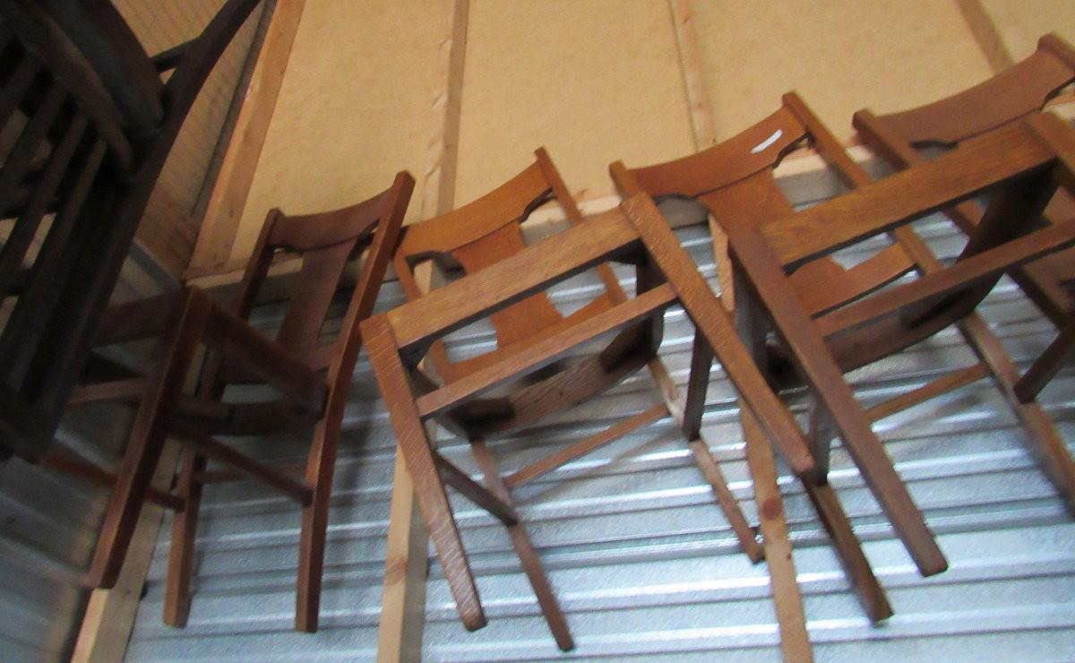 Were hanging in storage unit for over 20 years. There are no seats in any of the chairs. Otherwise, they appear to be in good shape. Might need tightening after all these years.
