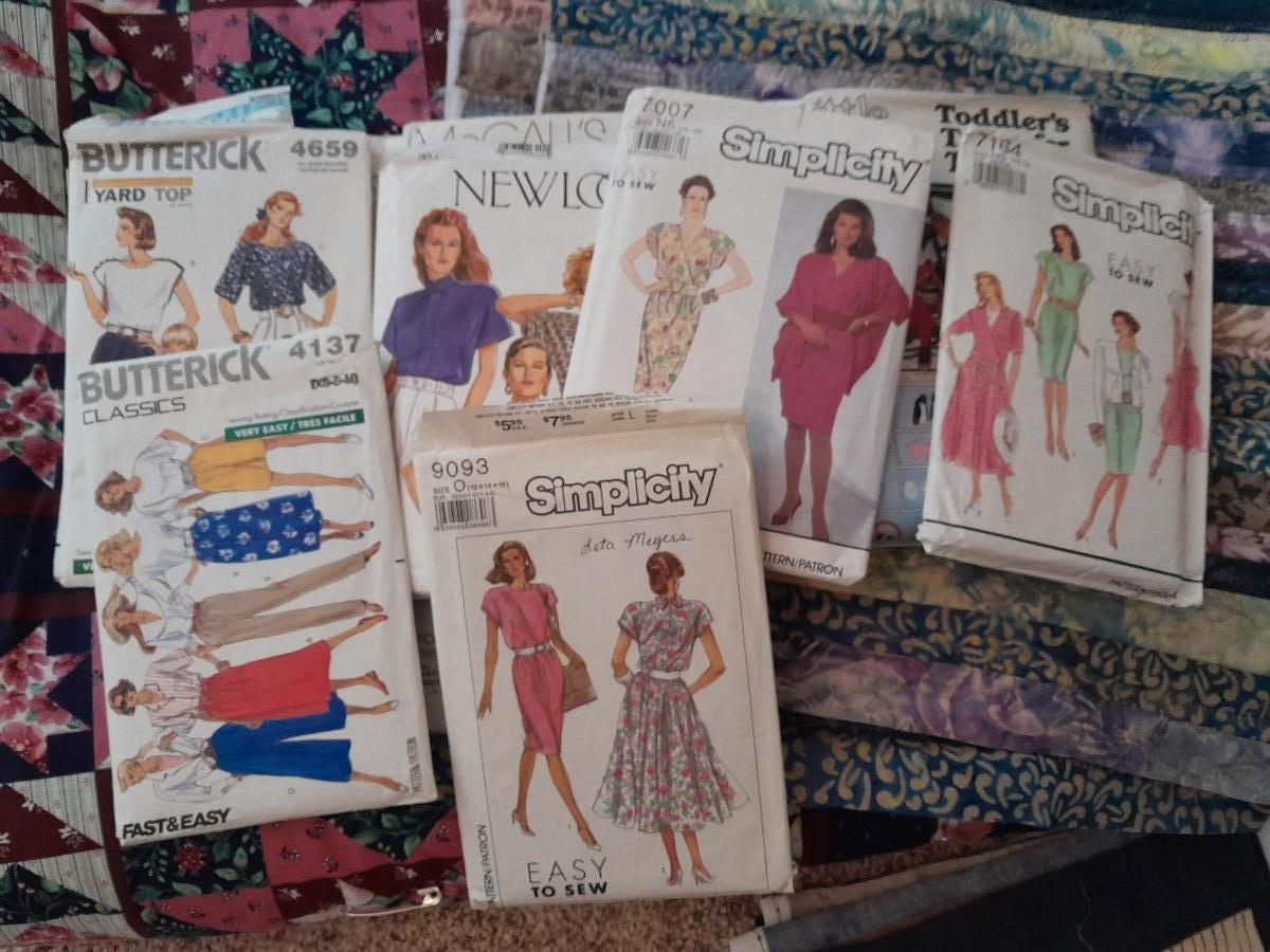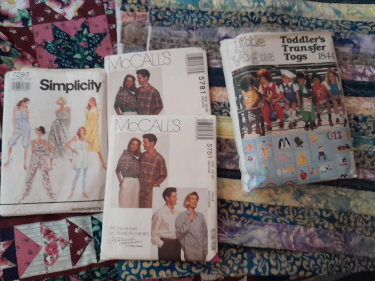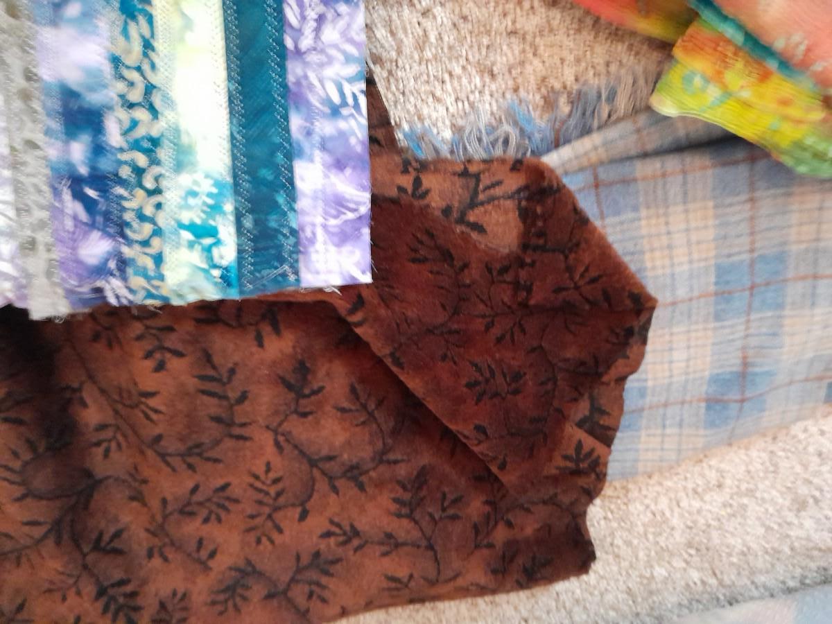 FABRIC SCRAPS SOME QUILTED, AND CLOTHING PATTERNS