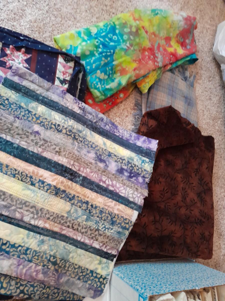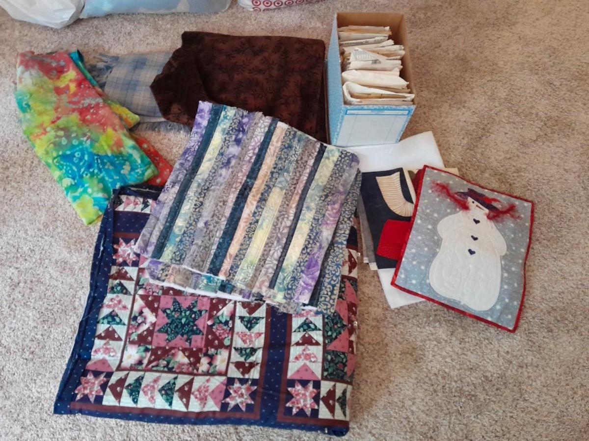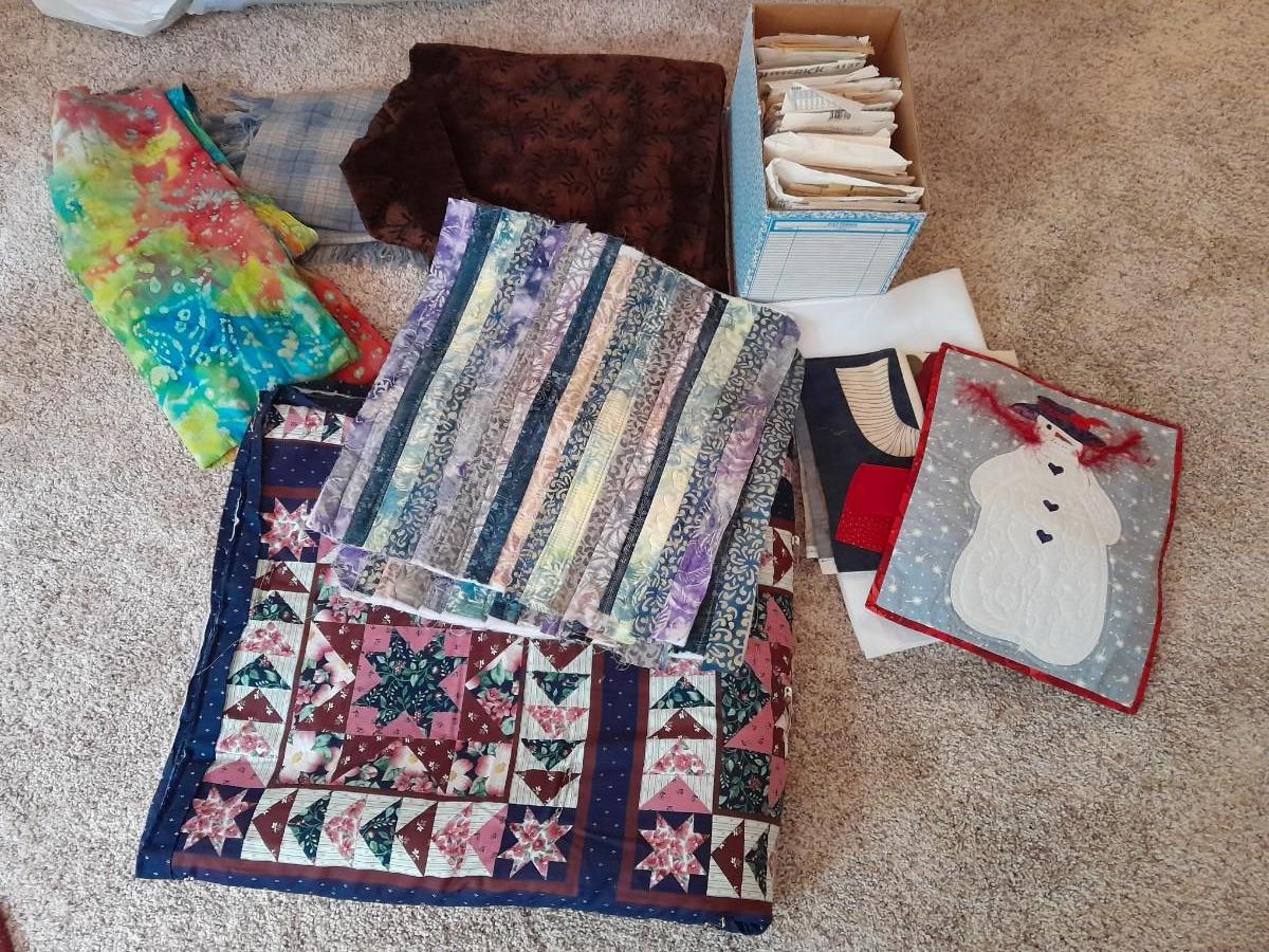 FABRIC SCRAPS SOME QUILTED, AND CLOTHING PATTERNS