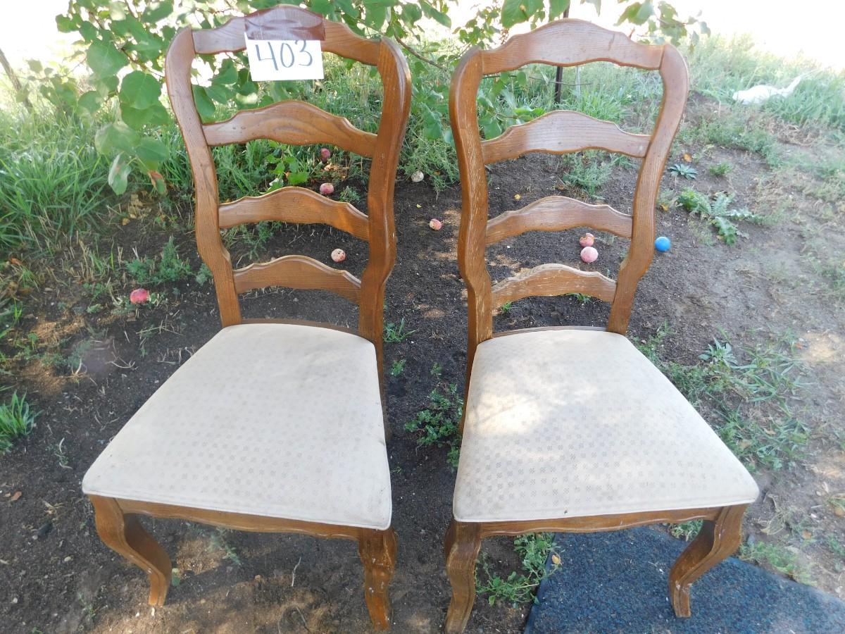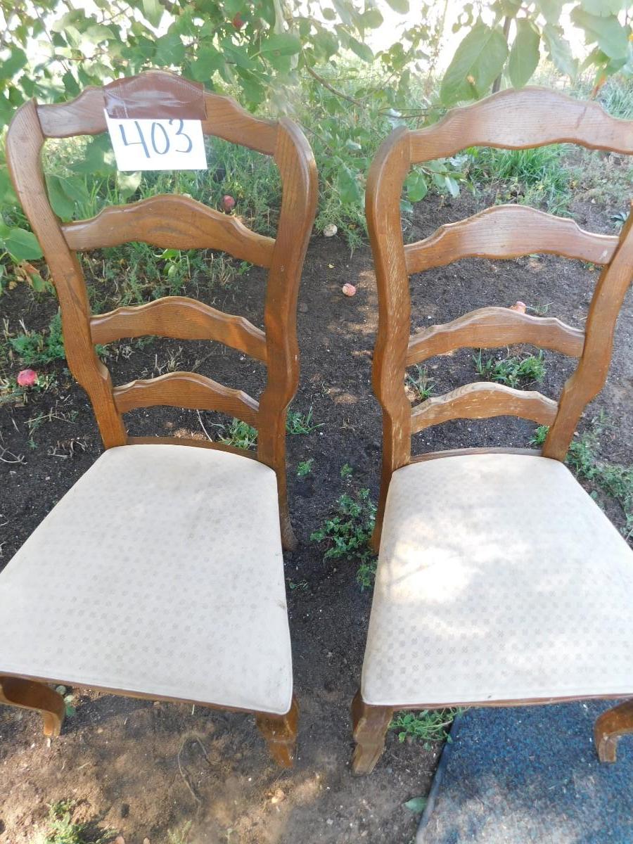 LOT 403 PAIR OF WOODEN CHAIRS, CLOTH SEATS-SHOP