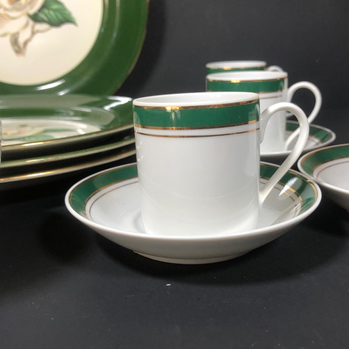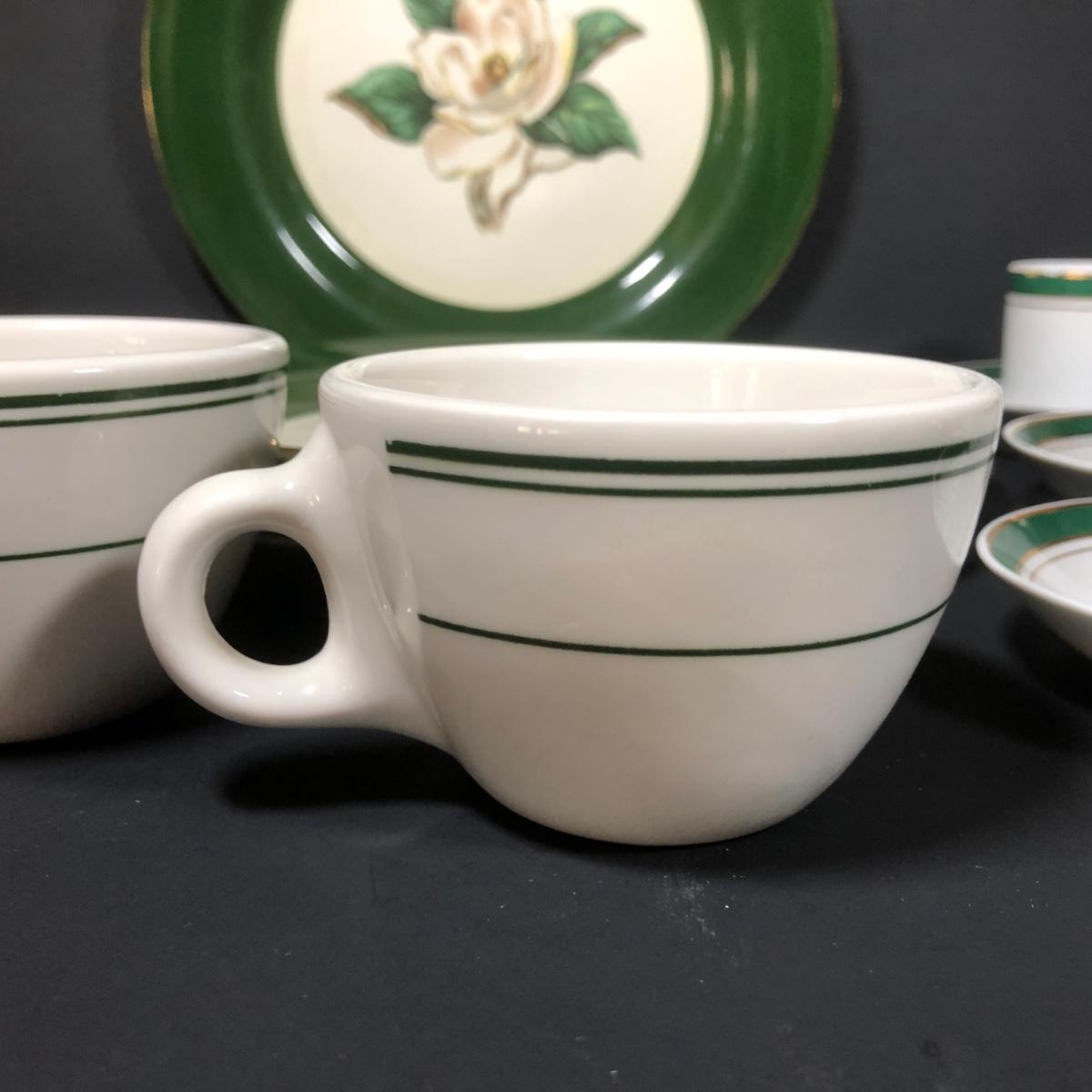 LOT 403G: Crown Porcelain Prestige Espresso Set w/ Homer Laughlin Thick Mugs & Vintage Lifetime Jade Rose Plates