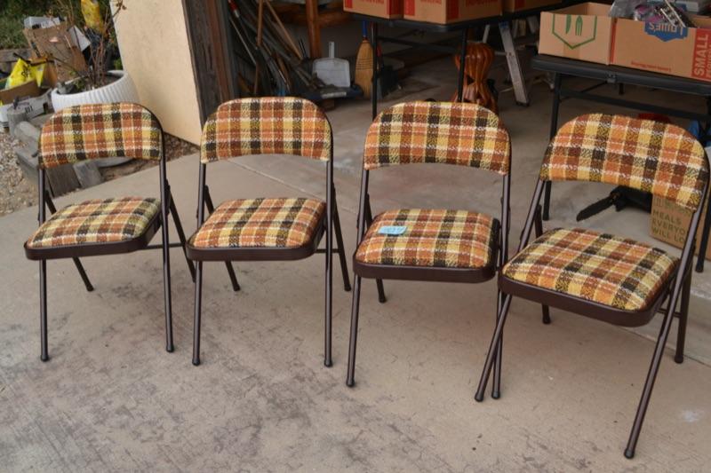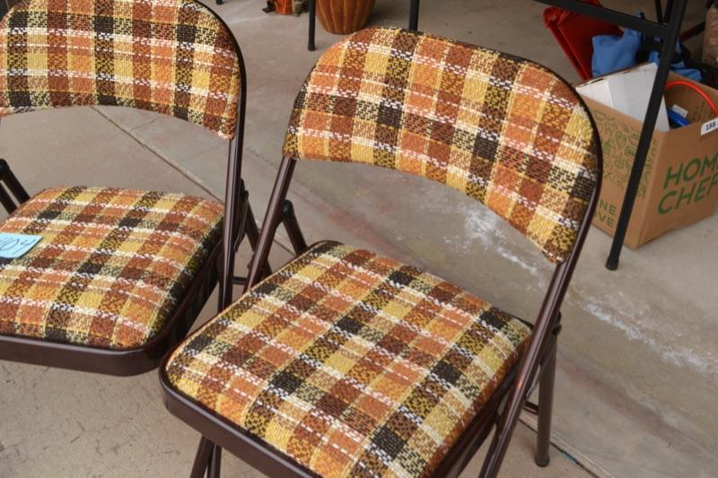 LOT 404. 4 VINTAGE PLAID FOLDING CHAIRS