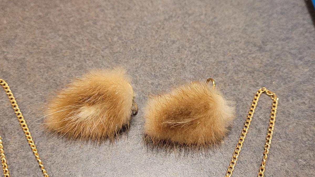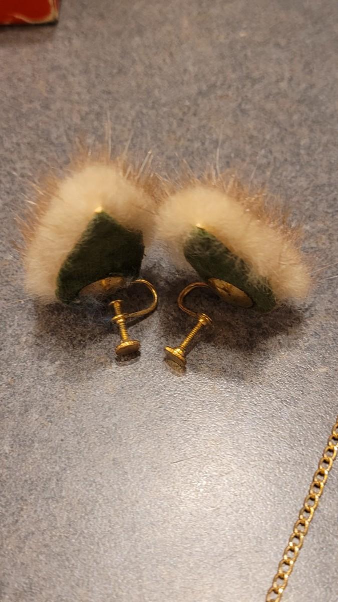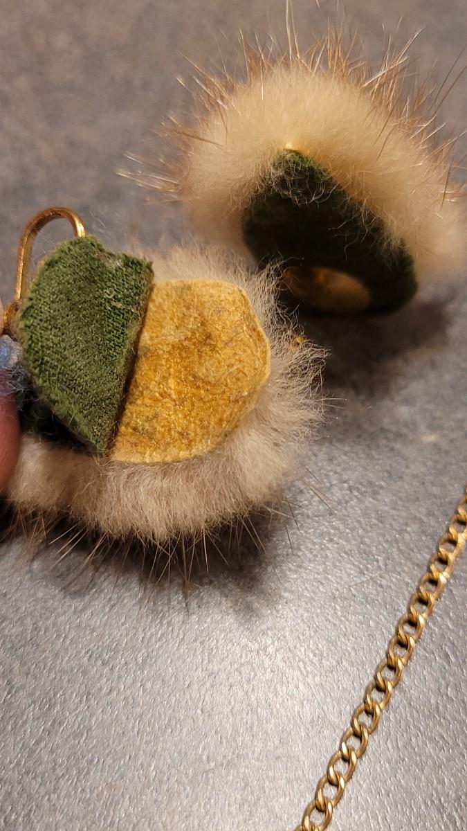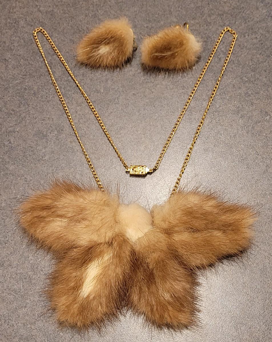 Lot 404: Antique/Vintage Custom Necklace with Real Fur Pendant and Matching Earrings