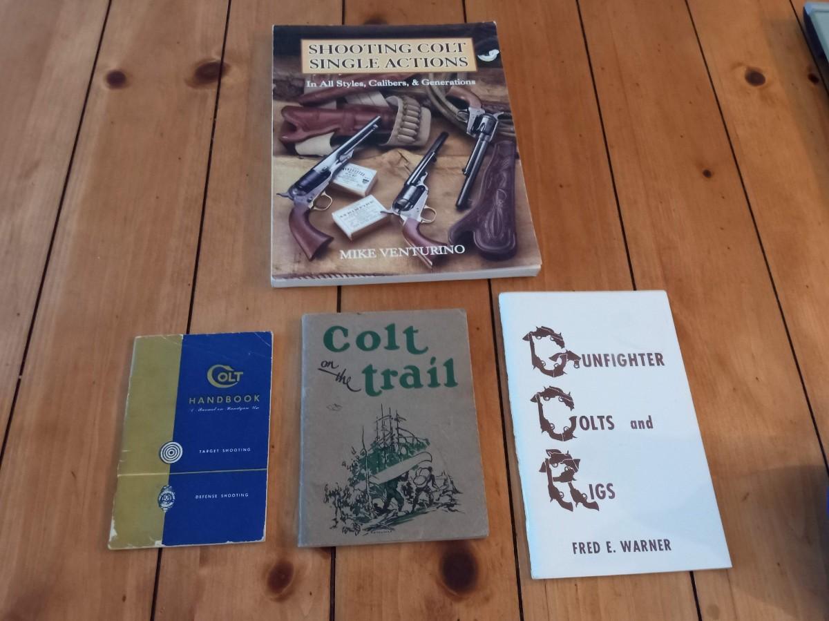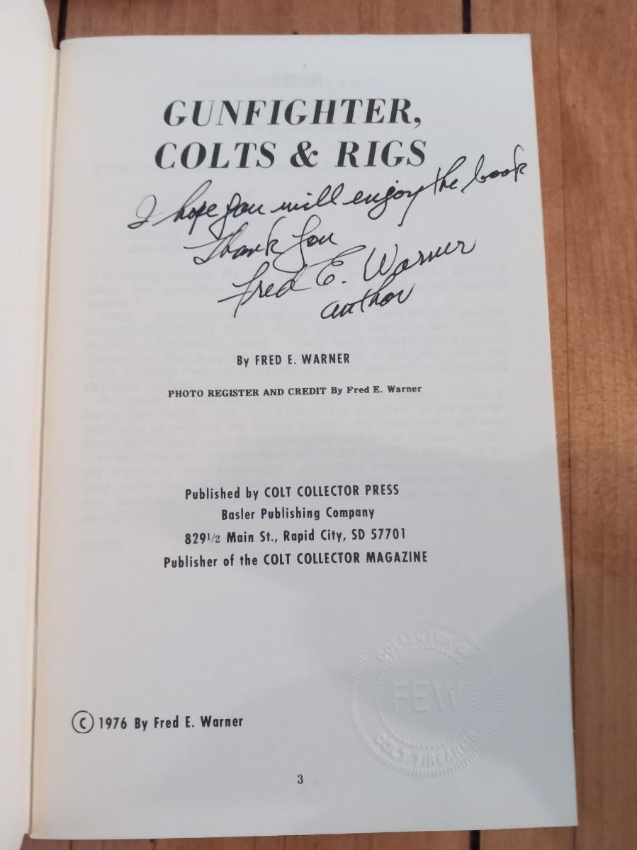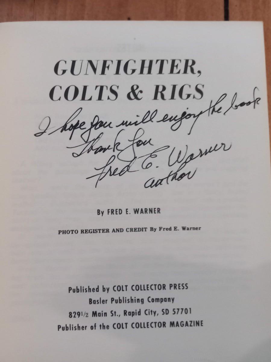COLT ON THE TRAIL 2ND EDITION 1934 BOOK, COLT HANDBOOK ON TARGET SHOOTING & DEFENSE SHOOTING, THE GUNFIGHTERS COLTS AND RIGS IS INSCRIBED BY THE AUTHOR