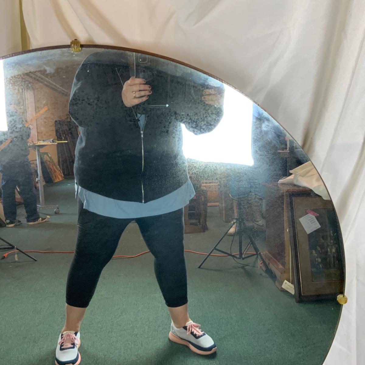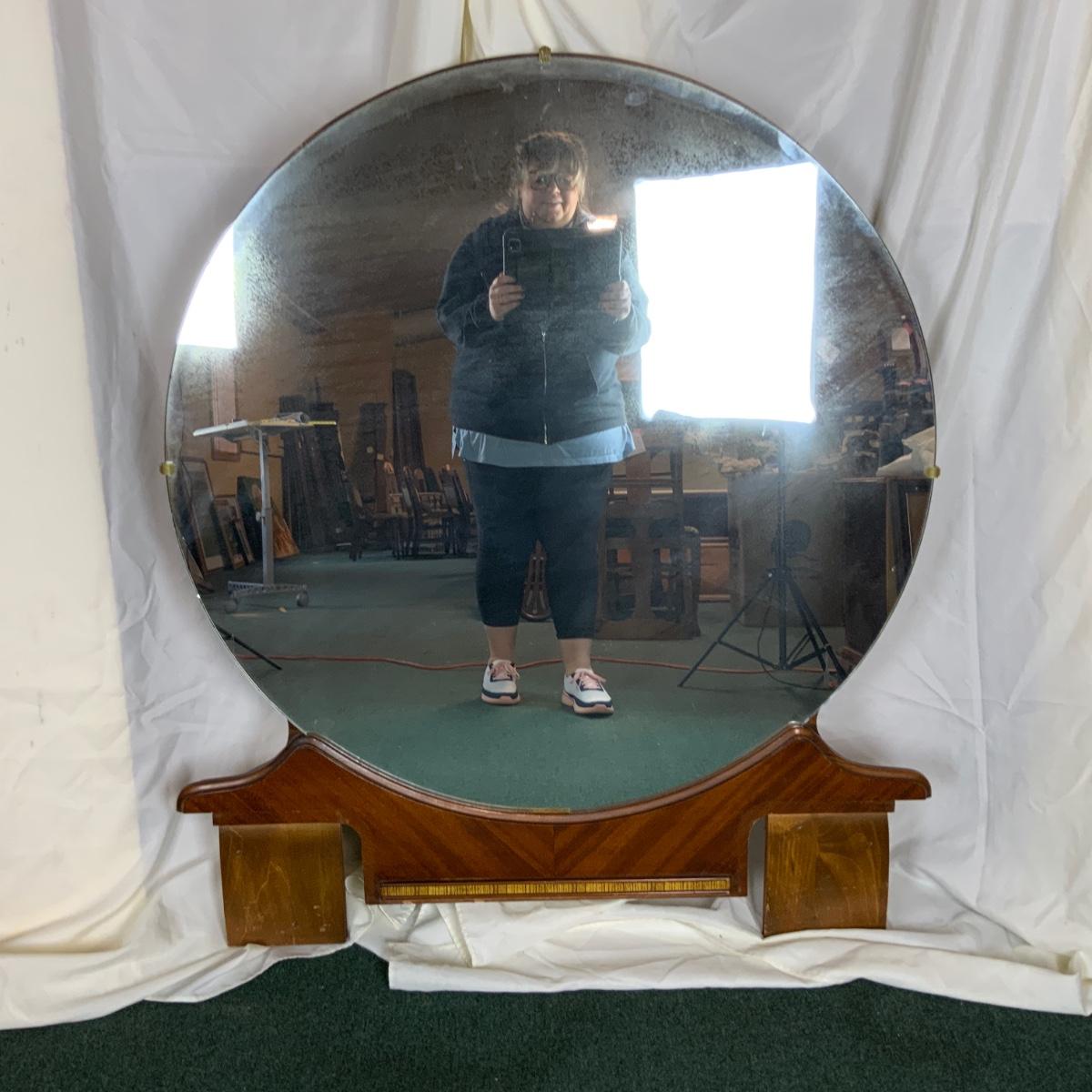 Large Round Vanity Mirror. A lovely piece for any home! //::\\ Please see photos for details and condition. No attempt has been made to hide any imperfections. All items listed in this auction are warehouse items, and need to be cleaned. A majority of the items need restoration as well. All items are sold AS IS and WITHOUT GUARANTEE. If you are uncertain about an item, DO NOT BID. Due to the nature of this online auction in-person inspection is HIGHLY recommended. All Sales are FINAL. Pick Up Times are FIRM. Please confirm with your own schedule that you can pick up in the scheduled times listed in the Terms and Conditions. Any questions please message the auctioneer. DO NOT Contact The Harp Gallery.