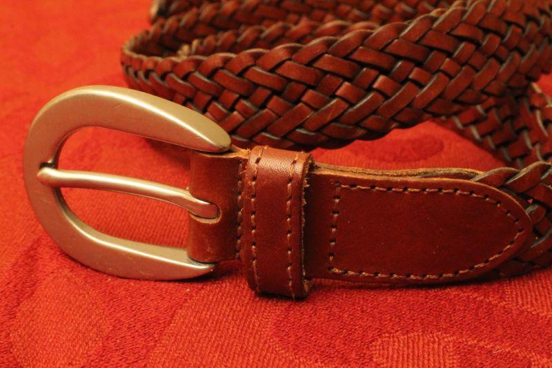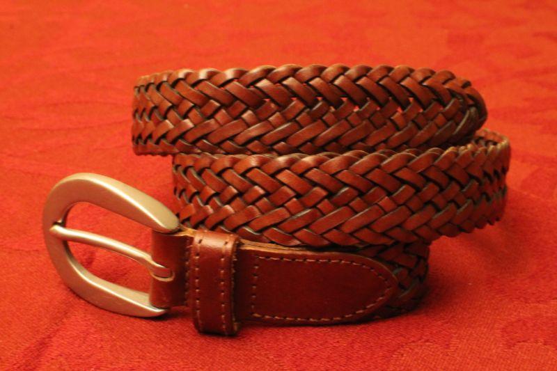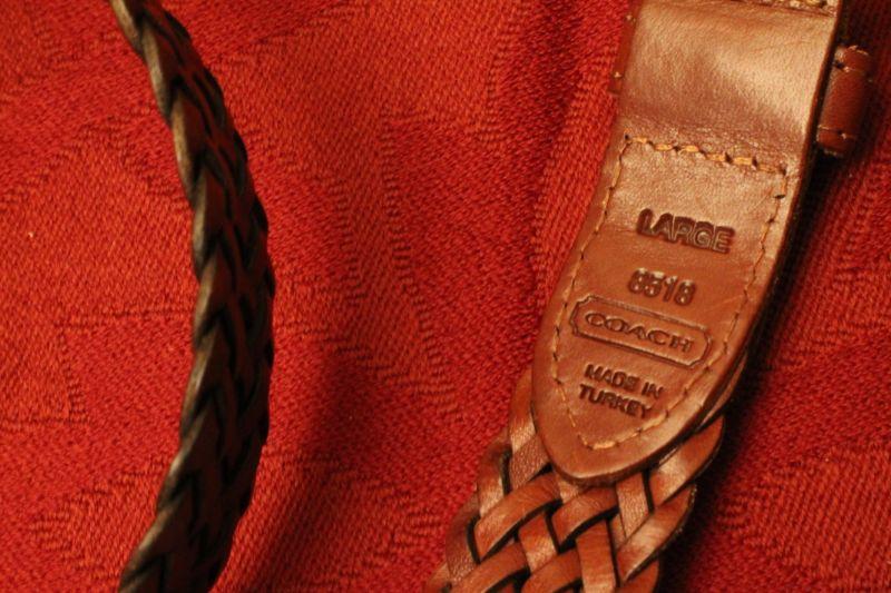 LOT #405: COACHâ„¢ Light Brown Woven Leather Women's Belt w/ Silver Buckle SIZE LARGE