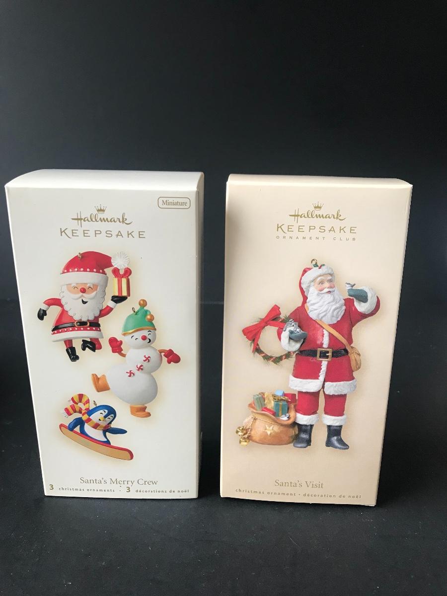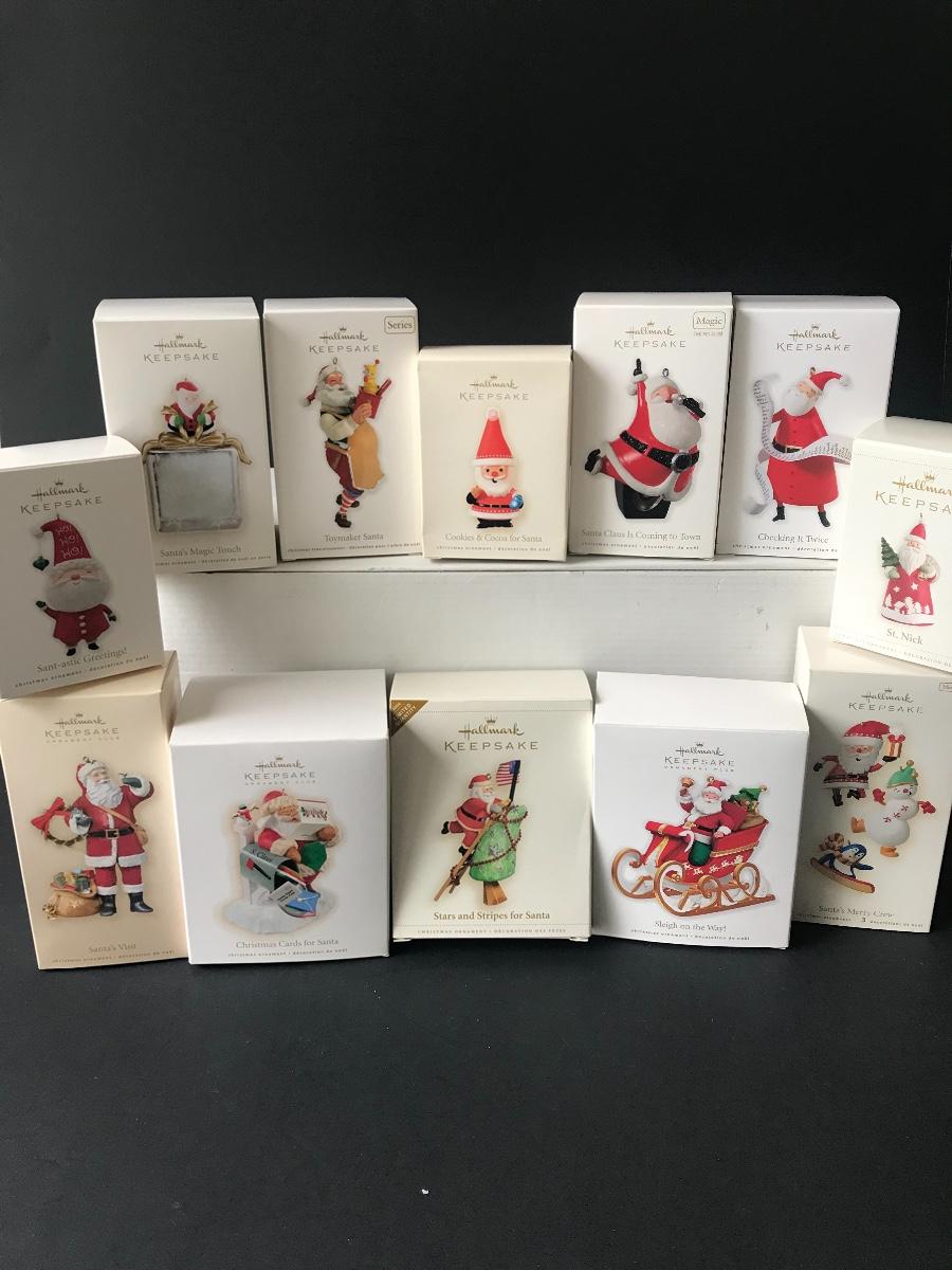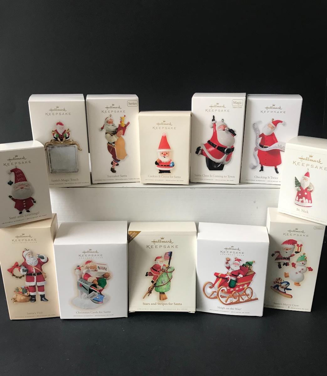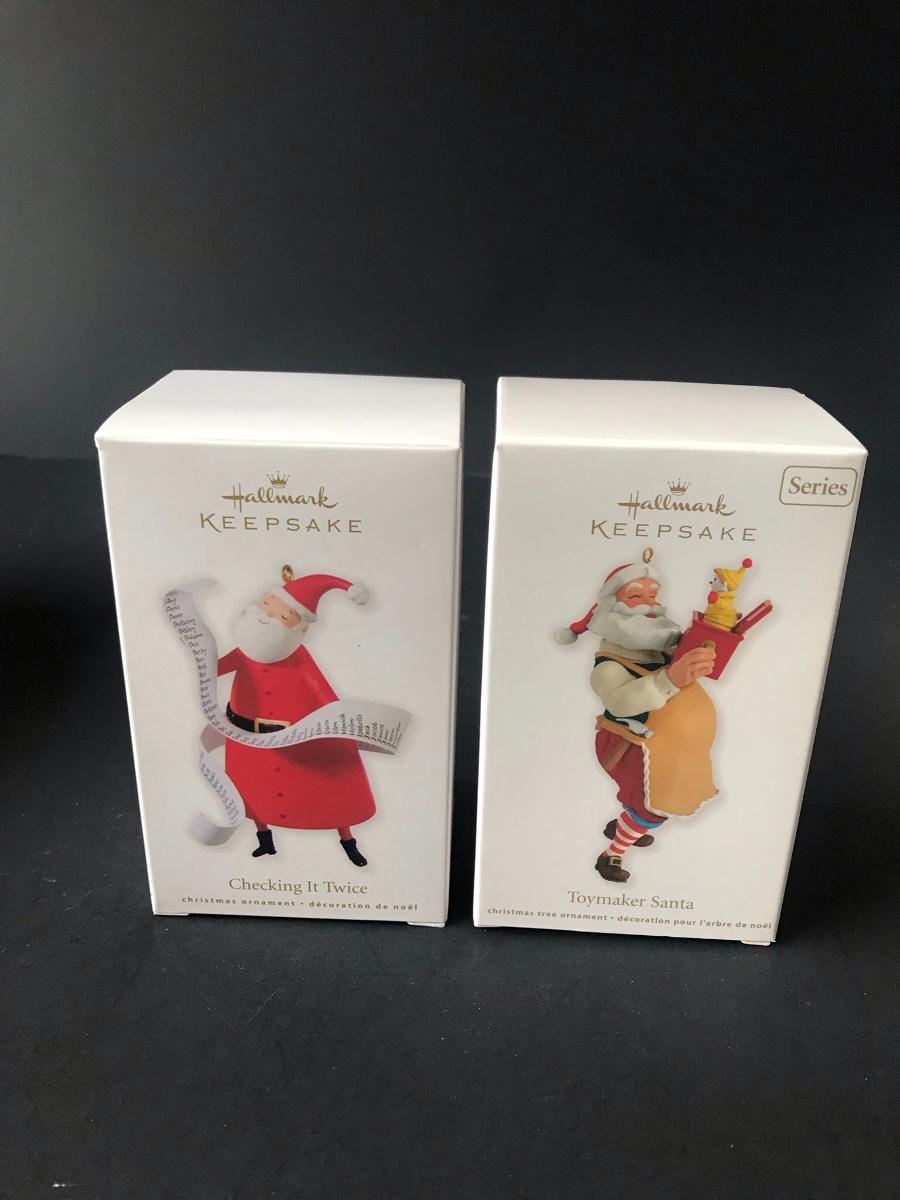 Santa Claus Christmas Ornaments - Hallmark Keepsake. All Holiday items in this auction are as-seen. The client collected a lot of holiday pieces and some are new in box, some were displayed once and come with original box, and some have been displayed and come with no box. They are all pre-owned in some fashion and have been stored in an attic or on shelf in library. Please see all pictures. The pictures show condition, measurements if taken, and what is included in the lot. Due to the large amount that we photograph and the time frame, we are not always able to take measurements. All items unless noted, are pre-owned and have been used. Thank you