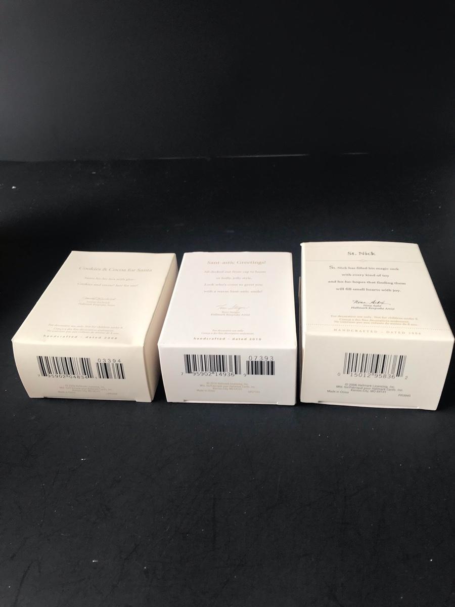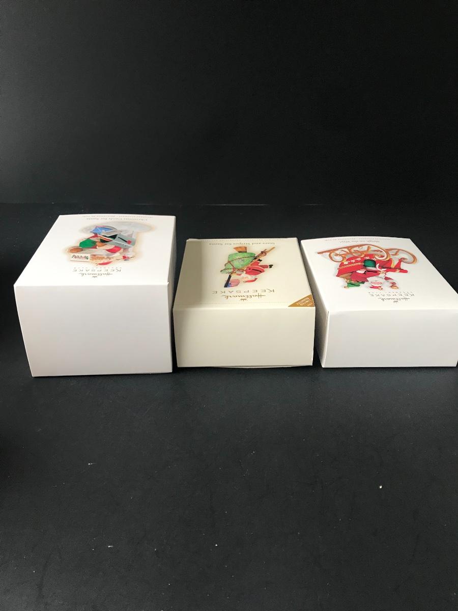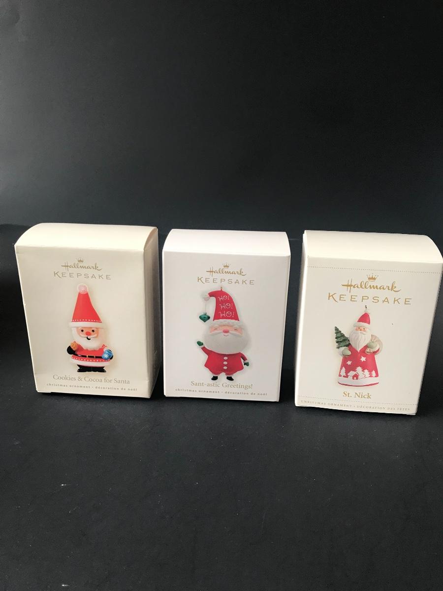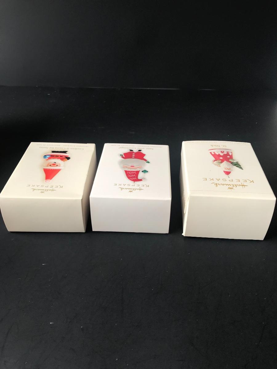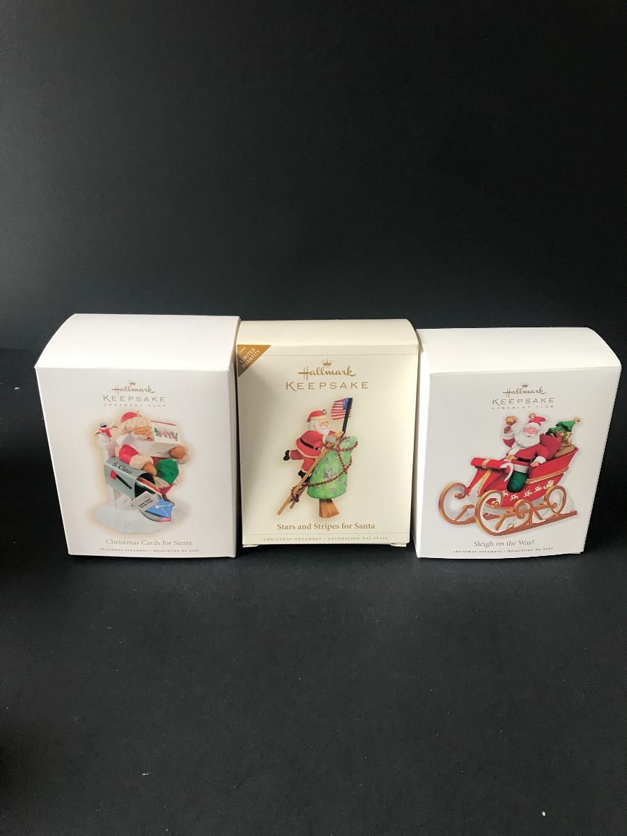 Santa Claus Christmas Ornaments - Hallmark Keepsake. All Holiday items in this auction are as-seen. The client collected a lot of holiday pieces and some are new in box, some were displayed once and come with original box, and some have been displayed and come with no box. They are all pre-owned in some fashion and have been stored in an attic or on shelf in library. Please see all pictures. The pictures show condition, measurements if taken, and what is included in the lot. Due to the large amount that we photograph and the time frame, we are not always able to take measurements. All items unless noted, are pre-owned and have been used. Thank you