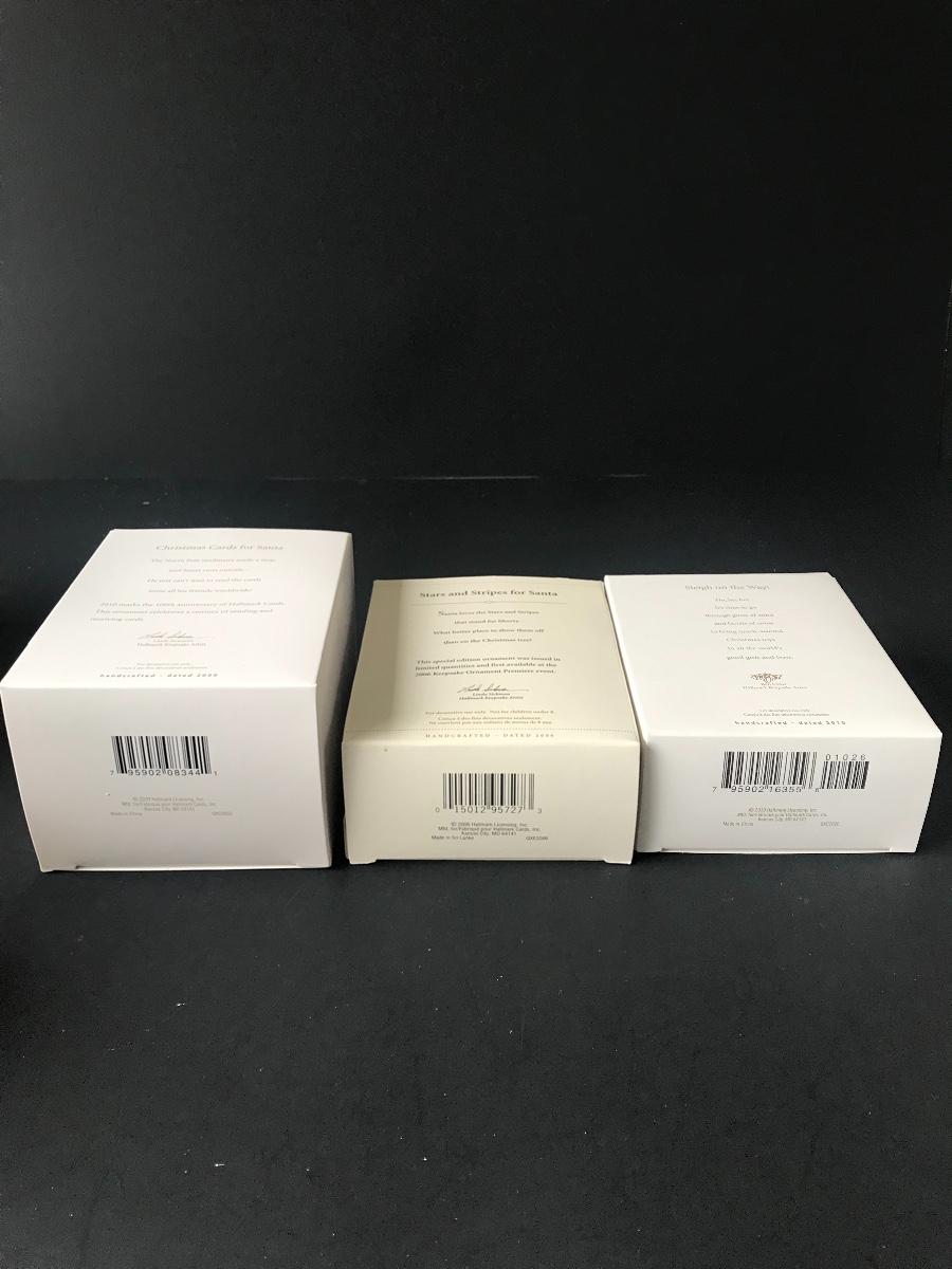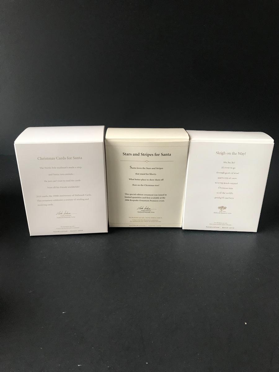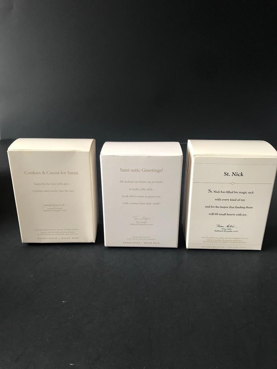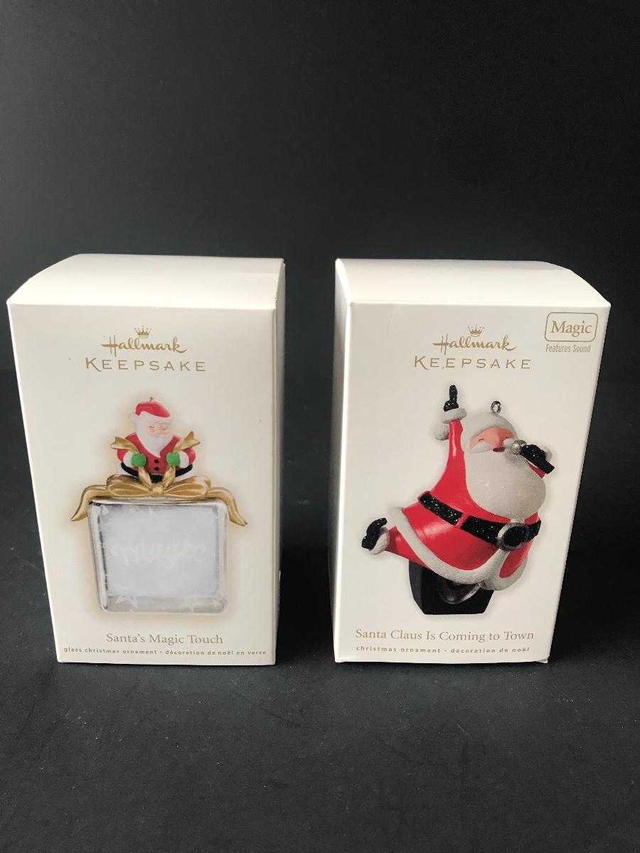 Santa Claus Christmas Ornaments - Hallmark Keepsake. All Holiday items in this auction are as-seen. The client collected a lot of holiday pieces and some are new in box, some were displayed once and come with original box, and some have been displayed and come with no box. They are all pre-owned in some fashion and have been stored in an attic or on shelf in library. Please see all pictures. The pictures show condition, measurements if taken, and what is included in the lot. Due to the large amount that we photograph and the time frame, we are not always able to take measurements. All items unless noted, are pre-owned and have been used. Thank you