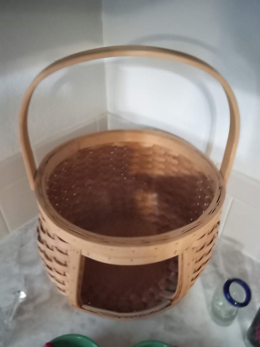 LOT 405 CONDIMENT DISH, SHOT GLASSES, GLASS STIR STICKS AND A BASKET