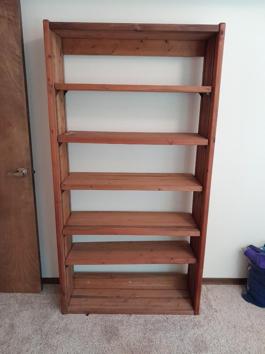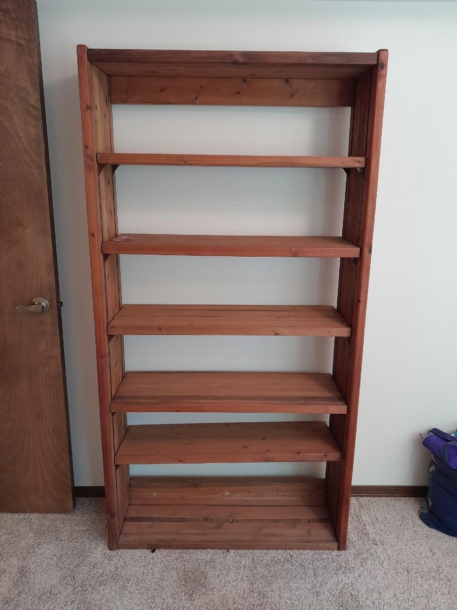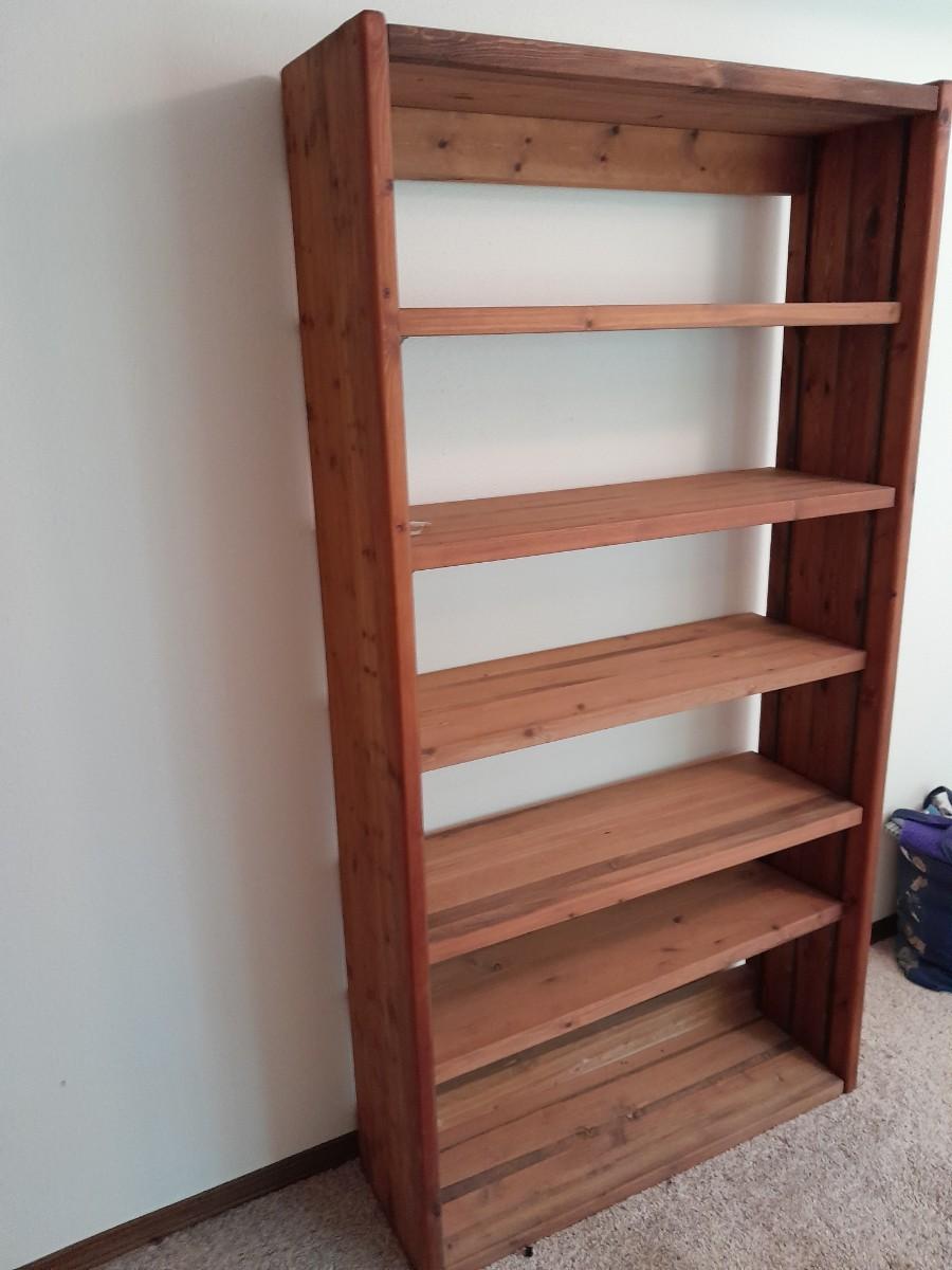NICE SOLID WOOD SHELVING UNIT / BOOKSHELF WITH ADJUSTABLE SHELVES 70" X 36" X 12"